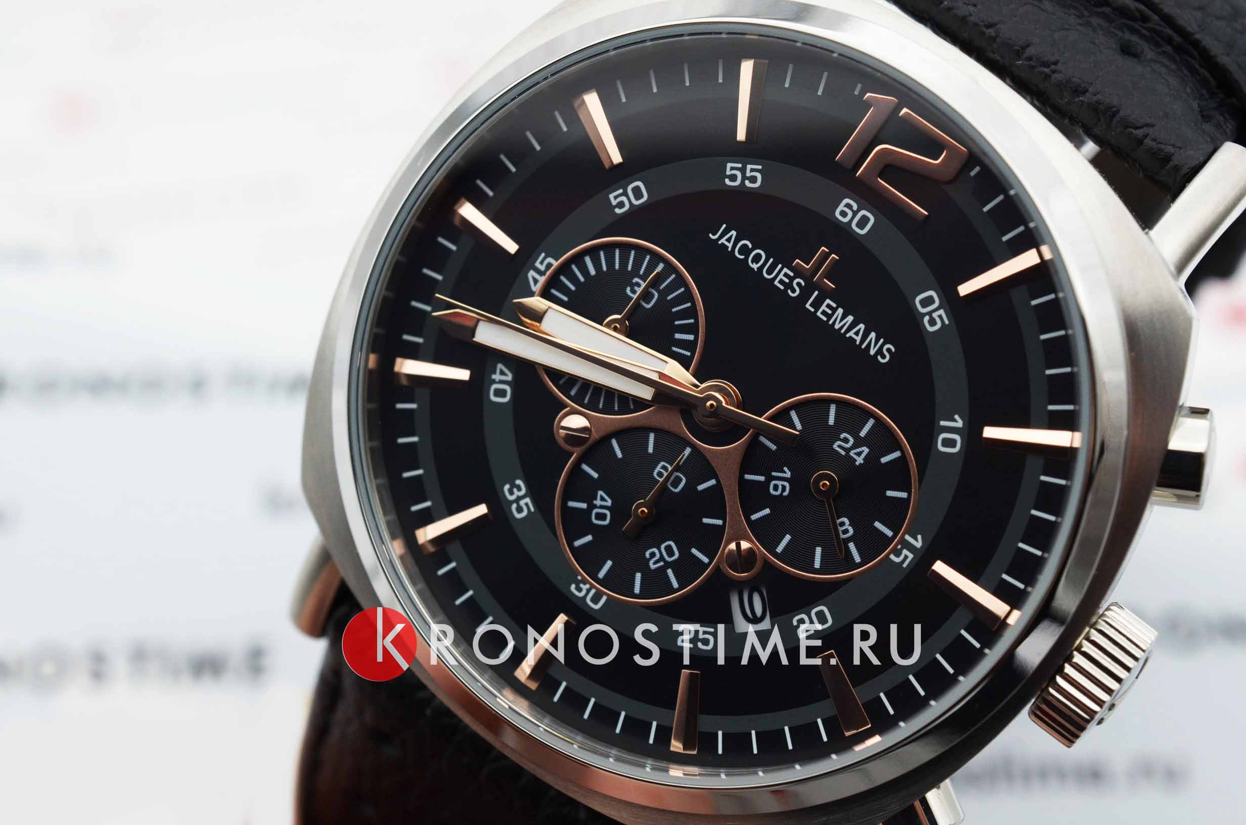 Наручные часы-хронографХронографФункция позволяет измерять отрезки времени с особой точностью: часы, минуты, секунды. Верным признаком хронографа является наличие на циферблате 3 дополнительных окошек-счётчиков. Jacques Lemans с функциями секундомераСекундомерСекундоме́р — прибор, способный измерять интервалы времени с точностью до долей секунды., 24-х часовым индикатором и датой призваны ставить на первое место индивидуальный стиль владельца, классическая элегантность придётся по вкусу каждому.