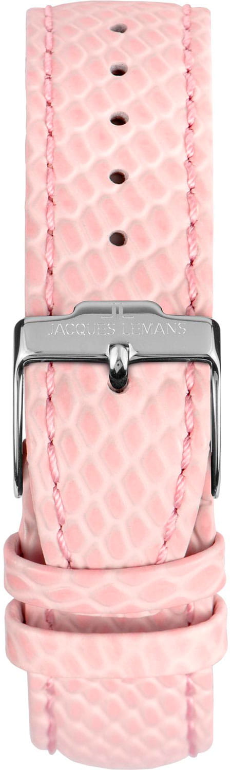 Женские часы Jacques Lemans Venice 1-2151D с минеральным стекломМинеральное стеклоМинеральное стекло представляет собой искусственно выращенный минерал кварца. Такое стекло отличается особой устойчивостью к повреждениям и царапинам. Уступает по некоторым качествам сапфировому стеклу., кварцевый механизм с высокой точностью. Часы- хронографХронографФункция позволяет измерять отрезки времени с особой точностью: часы, минуты, секунды. Верным признаком хронографа является наличие на циферблате 3 дополнительных окошек-счётчиков. с секундомеромСекундомерСекундоме́р — прибор, способный измерять интервалы времени с точностью до долей секунды.. БезельБезельВнешний ободок, закрепляющий стекло. В спортивных часах так называется поворотное кольцо с делениями на циферблате, выполняет роль таймера – замеряет отрезки времени на шкале. Неподвижный безель – элемент декора. Однонаправленно вращающийся безель на дайверских часах позволяет фиксировать моменты погружения и выныривания на поверхность. и корпус из нержавеющей стали. На циферблате расположены три дополнительных индикатора и окошко даты. Стрелки с люминесцентным покрытиемЛюминесцентное покрытиеПозволяет считывать показания времени в темноте. Производители наносят на стрелки, часовые индексы, безель или поверхность циферблата светонакопительный состав, дающий холодное свечение.. Каждая накладная риска украшена кристаллом Swarowski. Класс водозащиты: 50 метров, позволит защитить корпус от случайных брызг или капель дождя. Кожаный ремешок на стандартной застёжке.