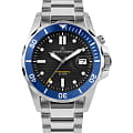 Мужские часы Jacques Lemans Hybromatic 1-2170J с минеральным стекломМинеральное стеклоМинеральное стекло представляет собой искусственно выращенный минерал кварца. Такое стекло отличается особой устойчивостью к повреждениям и царапинам. Уступает по некоторым качествам сапфировому стеклу., гибрид кварца и механики с автоподзаводом. Корпус выполенен из нержавеющей стали. Вращающийся безельБезельВнешний ободок, закрепляющий стекло. В спортивных часах так называется поворотное кольцо с делениями на циферблате, выполняет роль таймера – замеряет отрезки времени на шкале. Неподвижный безель – элемент декора. Однонаправленно вращающийся безель на дайверских часах позволяет фиксировать моменты погружения и выныривания на поверхность. из нержавеющей стали с PVDPVDУльтратонкое покрытие наносится в технике вакуумного напыления, сочетает в себе нитрид титана особой прочности со слоем золота или оксида хрома. Несёт в себе декоративную или защитную функцию. покрытием. Стрелки и метки с люминесцентным покрытиемЛюминесцентное покрытиеПозволяет считывать показания времени в темноте. Производители наносят на стрелки, часовые индексы, безель или поверхность циферблата светонакопительный состав, дающий холодное свечение.. Окошко даты находится в положении 3 часов. Класс водозащиты: 200 метров, позволит плавать, нырять и заниматься другими водными видами спорта. Стальной браслет на раскладной застёжкеРаскладная застёжкаТакой тип застёжки используется только на браслетах из металла. Она никогда не раскрывается полностью, происходит разделение на 2 и более частей. Раскладывающая застёжка снизит вероятность потери часов к минимуму..