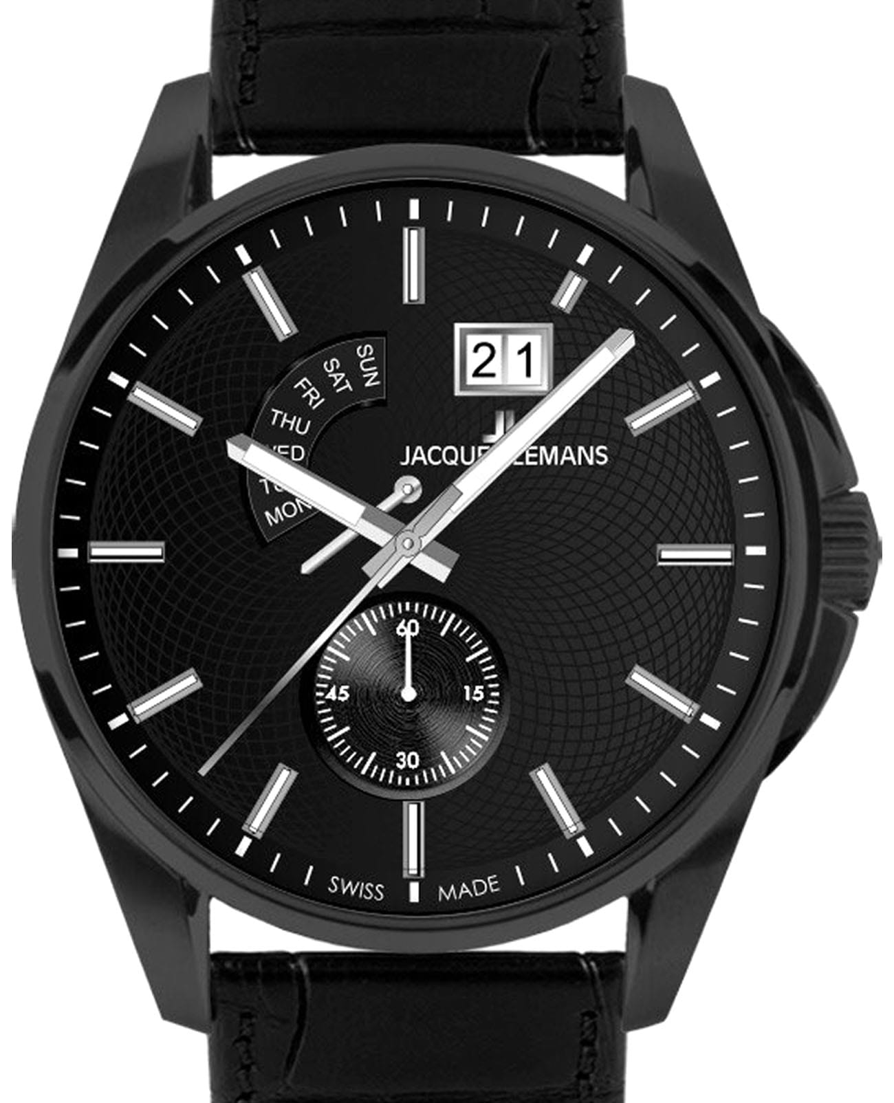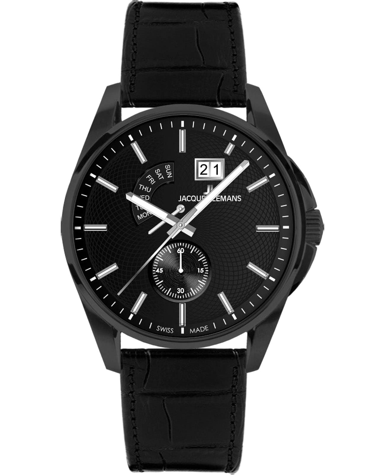 Мужские часы Jacques Lemans 1-2199I – лаконичная красота и изысканная элегантность. Оригинальная модель с классическим оформлением станет превосходным завершением образа, наделив его индивидуальным характером. Корпус выполнен из нержавеющей стали с PVD-покрытиемPVDУльтратонкое покрытие наносится в технике вакуумного напыления, сочетает в себе нитрид титана особой прочности со слоем золота или оксида хрома. Несёт в себе декоративную или защитную функцию. черного цвета, диаметром 44 мм, что обеспечивает долговечность и утончённый внешний вид. Минеральное стеклоМинеральное стеклоМинеральное стекло представляет собой искусственно выращенный минерал кварца. Такое стекло отличается особой устойчивостью к повреждениям и царапинам. Уступает по некоторым качествам сапфировому стеклу. с сапфировым напылением защищает циферблат от царапин. Кожаный ремешок на стандартной застёжке обеспечивает комфортное ношение. Водозащита 100 метров позволит плавать, нырять и заниматься другими водными видами спорта. Стрелки и метки с люминесцентным покрытиемЛюминесцентное покрытиеПозволяет считывать показания времени в темноте. Производители наносят на стрелки, часовые индексы, безель или поверхность циферблата светонакопительный состав, дающий холодное свечение. позволяющие легко определять время даже в темноте. Окошко даты находится в положении 1 час, на 6 часов вынесена индикация секунд. Широкое окошко дня недели в положении 11-12 часов позволяет показывать название дня недели. Это аксессуар для мужчины, который ценит классический стиль и функциональность.