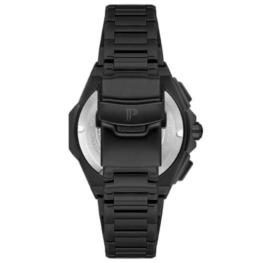 Швейцарские мужские часы-хронографХронографФункция позволяет измерять отрезки времени с особой точностью: часы, минуты, секунды. Верным признаком хронографа является наличие на циферблате 3 дополнительных окошек-счётчиков. с секундомеромСекундомерСекундоме́р — прибор, способный измерять интервалы времени с точностью до долей секунды. Jacques Philippe Esquire JPQGC484311, кварцевый механизм с высокой точностью. Сапфировое стеклоСапфировое стеклоПрочный и надёжный материал из кристалла сапфира синтетического происхождения, характеризующийся особой твёрдостью и устойчивостью к царапинам и повреждениям. устойчивое к появлению царапин, обладающее высокой прозрачностью. Корпус часов изготовлен из нержавеющей стали 316L с PVD-покрытиемPVDУльтратонкое покрытие наносится в технике вакуумного напыления, сочетает в себе нитрид титана особой прочности со слоем золота или оксида хрома. Несёт в себе декоративную или защитную функцию.. На циферблате три дополнительных индикатора. Стрелки и метки с люминесцентным покрытиемЛюминесцентное покрытиеПозволяет считывать показания времени в темноте. Производители наносят на стрелки, часовые индексы, безель или поверхность циферблата светонакопительный состав, дающий холодное свечение.. Шкала тахиметраТахиметрРазмеченная шкала, располагается на ободке или безеле часов. Тахиметр позволяет рассчитать скорость на определённом участке пути, расстояние измеряется в километрах или милях. на циферблате. Класс водозащиты: 50 метров, позволит защитить корпус от случайных брызг или капель дождя. Стальной браслет с PVD-покрытиемPVDУльтратонкое покрытие наносится в технике вакуумного напыления, сочетает в себе нитрид титана особой прочности со слоем золота или оксида хрома. Несёт в себе декоративную или защитную функцию. на застёжке «бабочка»Застёжка "бабочка"Такой вид застёжки дополняется предохранителями, помогающими избежать случайного раскрытия браслета. Обладают изящным исполнением. .