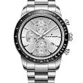 Швейцарские наручные часы Jacques Philippe JPQGC691326 сочетают в себе современный дизайн, надежность и функциональность, это стильные швейцарские часы с функцией хронографаХронографФункция позволяет измерять отрезки времени с особой точностью: часы, минуты, секунды. Верным признаком хронографа является наличие на циферблате 3 дополнительных окошек-счётчиков. и секундомераСекундомерСекундоме́р — прибор, способный измерять интервалы времени с точностью до долей секунды.. Корпус круглой формы диаметром 42 мм выполнен из прочной нержавеющей стали, а безельБезельВнешний ободок, закрепляющий стекло. В спортивных часах так называется поворотное кольцо с делениями на циферблате, выполняет роль таймера – замеряет отрезки времени на шкале. Неподвижный безель – элемент декора. Однонаправленно вращающийся безель на дайверских часах позволяет фиксировать моменты погружения и выныривания на поверхность. с элегантным черным IP-покрытиемIP-покрытиеМетод ионного напыления. Демонстрирует повышенную устойчивость к истиранию, окислению и химическим веществам. Под воздействием высокого давления и температуры около 1500°C молекулы металла надёжно соединяются с частицами корпуса часов.. Сапфировое стеклоСапфировое стеклоПрочный и надёжный материал из кристалла сапфира синтетического происхождения, характеризующийся особой твёрдостью и устойчивостью к царапинам и повреждениям. с антибликовым покрытиемАнтибликовое покрытиеСлой оксида металла в 0,13-0,3 микрон, благодаря которому стекло часов не бликует и не отражает свет. Антибликовое покрытие уменьшает отражение света в 10 раз, обеспечивая отличную читаемость показателей циферблата. надежно защищает серебристый циферблат от царапин и повреждений. Модель оснащена точным кварцевым механизмом, а также дополнительными функциями — тахиметромТахиметрРазмеченная шкала, располагается на ободке или безеле часов. Тахиметр позволяет рассчитать скорость на определённом участке пути, расстояние измеряется в километрах или милях. и индикатором даты, что делает часы не только стильным аксессуаром, но и практичным помощником на каждый день. Серебряный браслет шириной 22 мм удобно фиксируется на запястье с помощью застежки «бабочка»Застёжка "бабочка"Такой вид застёжки дополняется предохранителями, помогающими избежать случайного раскрытия браслета. Обладают изящным исполнением. . Стрелки имеют люминесцентное покрытиеЛюминесцентное покрытиеПозволяет считывать показания времени в темноте. Производители наносят на стрелки, часовые индексы, безель или поверхность циферблата светонакопительный состав, дающий холодное свечение. для удобства чтения времени в темноте. Водозащита 5 АТМ позволяет не снимать часы при дожде и случайных контактах с водой.