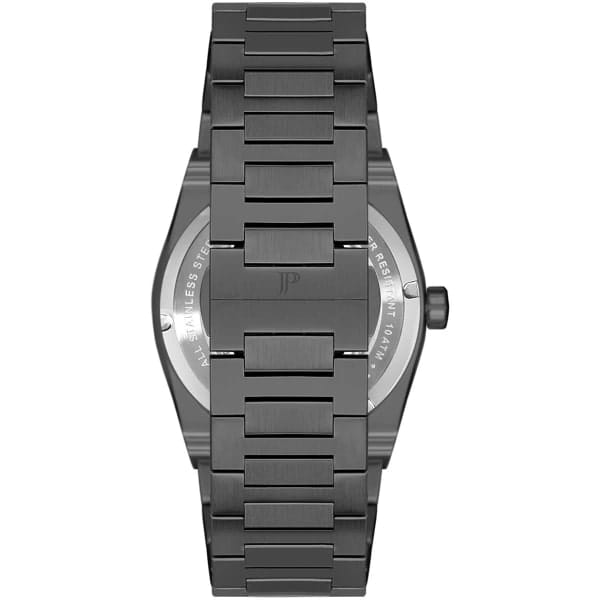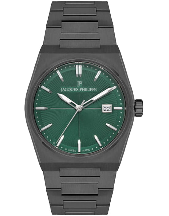 Швейцарские мужские часы Jacques Philippe Aurora JPQGS4283X7, кварцевый механизм с высокой точностью. Сапфировое стеклоСапфировое стеклоПрочный и надёжный материал из кристалла сапфира синтетического происхождения, характеризующийся особой твёрдостью и устойчивостью к царапинам и повреждениям. устойчивое к появлению царапин, обладающее высокой прозрачностью. Корпус часов изготовлен из нержавеющей стали 316L с PVD-покрытиемPVDУльтратонкое покрытие наносится в технике вакуумного напыления, сочетает в себе нитрид титана особой прочности со слоем золота или оксида хрома. Несёт в себе декоративную или защитную функцию.. Класс водозащиты: 50 метров, позволит защитить корпус от случайных брызг или капель дождя. Стальной браслет с PVD-покрытиемPVDУльтратонкое покрытие наносится в технике вакуумного напыления, сочетает в себе нитрид титана особой прочности со слоем золота или оксида хрома. Несёт в себе декоративную или защитную функцию. на застёжке-бабочке с кнопкамиЗастёжка "бабочка"Такой вид застёжки дополняется предохранителями, помогающими избежать случайного раскрытия браслета. Обладают изящным исполнением. . Окошко даты находится в положении 3 часа. Стрелки и метки с люминесцентным покрытиемЛюминесцентное покрытиеПозволяет считывать показания времени в темноте. Производители наносят на стрелки, часовые индексы, безель или поверхность циферблата светонакопительный состав, дающий холодное свечение..