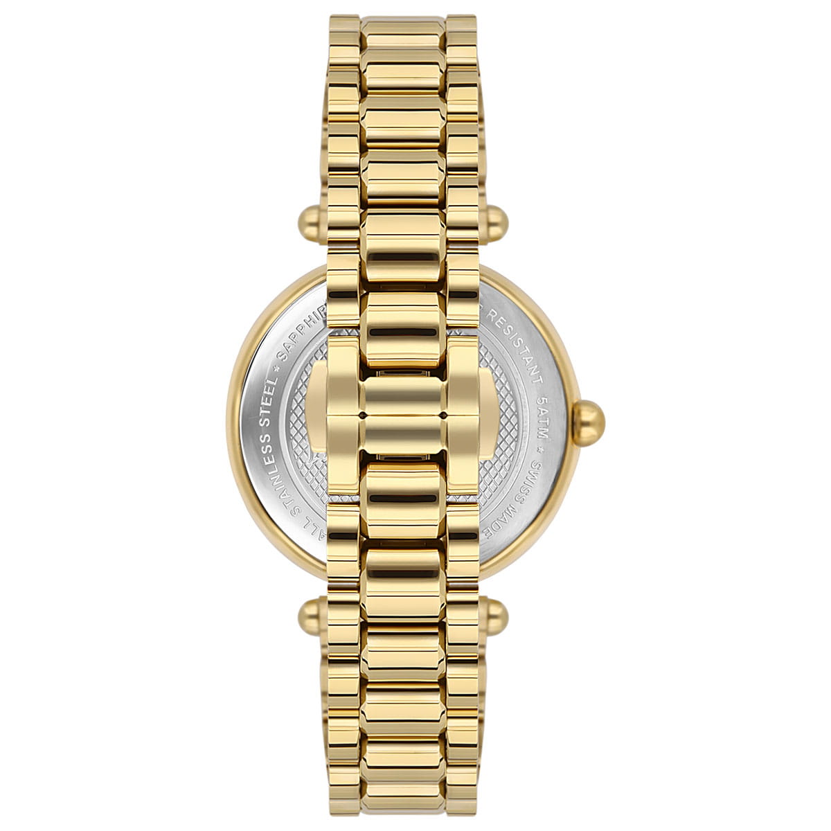 Швейцарские женские часы Jacques Philippe Mistress JPQLS0823X4, кварцевый механизм с высокой точностью. Сапфировое стеклоСапфировое стеклоПрочный и надёжный материал из кристалла сапфира синтетического происхождения, характеризующийся особой твёрдостью и устойчивостью к царапинам и повреждениям. устойчивое к появлению царапин, обладающее высокой прозрачностью. Корпус часов изготовлен из нержавеющей стали с IP-покрытиемIP-покрытиеМетод ионного напыления. Демонстрирует повышенную устойчивость к истиранию, окислению и химическим веществам. Под воздействием высокого давления и температуры около 1500°C молекулы металла надёжно соединяются с частицами корпуса часов.. Класс водозащиты: 50 метров, позволит защитить корпус от случайных брызг или капель дождя. Стальной браслет на застёжке-бабочке с кнопкамиЗастёжка "бабочка"Такой вид застёжки дополняется предохранителями, помогающими избежать случайного раскрытия браслета. Обладают изящным исполнением. . Циферблат и безельБезельВнешний ободок, закрепляющий стекло. В спортивных часах так называется поворотное кольцо с делениями на циферблате, выполняет роль таймера – замеряет отрезки времени на шкале. Неподвижный безель – элемент декора. Однонаправленно вращающийся безель на дайверских часах позволяет фиксировать моменты погружения и выныривания на поверхность. инкрустированы кристаллами. Окошко даты находится в положении 6 часов.