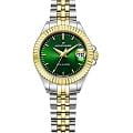 Jacques Philippe JPQLS8273X8 — женские часы в сдержанном классическом исполнении с акцентом на простоту и надёжность. Корпус диаметром 26 мм выполнен из нержавеющей стали — делает модель универсальной и комфортной в повседневной носке. Циферблат оформлен в светлом зеленом тоне с тонкими стрелками, лаконичными часовыми метками и аккуратным окошком даты в позиции «3 часа». Минималистичный стиль подчёркивает строгость и чистоту дизайна. Поверхность защищена устойчивым к царапинам сапфировым стекломСапфировое стеклоПрочный и надёжный материал из кристалла сапфира синтетического происхождения, характеризующийся особой твёрдостью и устойчивостью к царапинам и повреждениям., которое обеспечивает хорошую читаемость и долговечность. БезельБезельВнешний ободок, закрепляющий стекло. В спортивных часах так называется поворотное кольцо с делениями на циферблате, выполняет роль таймера – замеряет отрезки времени на шкале. Неподвижный безель – элемент декора. Однонаправленно вращающийся безель на дайверских часах позволяет фиксировать моменты погружения и выныривания на поверхность. с PVD-покрытиемPVDУльтратонкое покрытие наносится в технике вакуумного напыления, сочетает в себе нитрид титана особой прочности со слоем золота или оксида хрома. Несёт в себе декоративную или защитную функцию.. Механизм — точный швейцарский кварц, не требующий подзавода. Он обеспечивает стабильную и бесперебойную работу часов, сохраняя точность в любых условиях. Браслет из нержавеющей стали с PVD-покрытиемPVDУльтратонкое покрытие наносится в технике вакуумного напыления, сочетает в себе нитрид титана особой прочности со слоем золота или оксида хрома. Несёт в себе декоративную или защитную функцию. визуально продолжает корпус и фиксируется на застёжке-бабочке с кнопкамиЗастёжка "бабочка"Такой вид застёжки дополняется предохранителями, помогающими избежать случайного раскрытия браслета. Обладают изящным исполнением. , обеспечивая комфортную посадку. Водозащита до 10 ATM позволяет использовать часы не только в повседневной жизни, но и при активности на воде. Jacques Philippe — это надёжная и универсальная модель для тех, кто ценит швейцарскую точность, простоту и уверенный стиль без лишних деталей.
