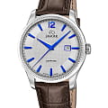 Jaguar J1042/2 из коллекции Acamar — элегантные мужские часы, сочетающие швейцарское качество и современный дизайн. Корпус диаметром 40 мм выполнен из нержавеющей стали, что обеспечивает прочность и долговечность. Сапфировое стеклоСапфировое стеклоПрочный и надёжный материал из кристалла сапфира синтетического происхождения, характеризующийся особой твёрдостью и устойчивостью к царапинам и повреждениям. защищает циферблат от царапин и повреждений. Серебристый циферблат с синими стрелками и индексами подчёркивает изысканный стиль. Часы оснащены функцией индикации даты, расположенной в окошке на отметке «3 часа», что добавляет практичности. Ремешок из коричневой кожи гарантирует комфортное ношение. Классическая застёжка обеспечивает надёжную фиксацию на запястье. Водозащита до 5 ATM (50 метров) делает часы подходящими для повседневного использования. Jaguar J1042/2 — это идеальный выбор для мужчин, которые ценят классический дизайн и современные технологии.