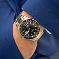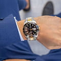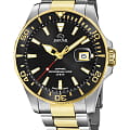 Мужские швейцарские часы Jaguar Executive Diver J863/D. Кварцевый швейцарский калибр Ronda 6003D. Сапфировое стеклоСапфировое стеклоПрочный и надёжный материал из кристалла сапфира синтетического происхождения, характеризующийся особой твёрдостью и устойчивостью к царапинам и повреждениям. устойчивое к мелким механическим повреждениям. Корпус и браслет часов изготовлены из нержавеющей стали. Стрелки и метки с люминесцентным покрытиемЛюминесцентное покрытиеПозволяет считывать показания времени в темноте. Производители наносят на стрелки, часовые индексы, безель или поверхность циферблата светонакопительный состав, дающий холодное свечение.. Окошко даты находится в положении 3 часа. Класс водозащиты: 200 метров, позволит плавать, нырять и заниматься другими водными видами спорта. Стальной браслет с частичным  PVD-покрытиемPVDУльтратонкое покрытие наносится в технике вакуумного напыления, сочетает в себе нитрид титана особой прочности со слоем золота или оксида хрома. Несёт в себе декоративную или защитную функцию. на раскладной застёжкеРаскладная застёжкаТакой тип застёжки используется только на браслетах из металла. Она никогда не раскрывается полностью, происходит разделение на 2 и более частей. Раскладывающая застёжка снизит вероятность потери часов к минимуму.. БезельБезельВнешний ободок, закрепляющий стекло. В спортивных часах так называется поворотное кольцо с делениями на циферблате, выполняет роль таймера – замеряет отрезки времени на шкале. Неподвижный безель – элемент декора. Однонаправленно вращающийся безель на дайверских часах позволяет фиксировать моменты погружения и выныривания на поверхность. с PVD-покрытиемPVDУльтратонкое покрытие наносится в технике вакуумного напыления, сочетает в себе нитрид титана особой прочности со слоем золота или оксида хрома. Несёт в себе декоративную или защитную функцию..