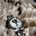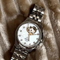 Женские швейцарские часы JAGUAR Automatic Open Heart J994/1, механизм — автоподзавод. В часах с автоподзаводом заводная головка практически не используется, что исключает истирание ее материала и материала корпуса. Сапфировое стеклоСапфировое стеклоПрочный и надёжный материал из кристалла сапфира синтетического происхождения, характеризующийся особой твёрдостью и устойчивостью к царапинам и повреждениям. устойчивое к мелким механическим повреждениям. Корпус и браслет часов изготовлены из нержавеющей стали. Класс водозащиты: 50 метров, позволит защитить корпус от случайных брызг или капель дождя. Стальной браслет на застёжке-бабочке с кнопкамиЗастёжка "бабочка"Такой вид застёжки дополняется предохранителями, помогающими избежать случайного раскрытия браслета. Обладают изящным исполнением. . Циферблат украшен кристаллами в роли часовых индексов, крупная апертура в виде сердца, открывающая обзор на балансовое колесо механизма.