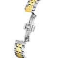 Женские швейцарские часы Jaguar Automatic Open Heart J995/1, механизм — автоподзавод. В часах с автоподзаводом заводная головка практически не используется, что исключает истирание ее материала и материала корпуса. Сапфировое стеклоСапфировое стеклоПрочный и надёжный материал из кристалла сапфира синтетического происхождения, характеризующийся особой твёрдостью и устойчивостью к царапинам и повреждениям. устойчивое к мелким механическим повреждениям. Корпус часов изготовлен из нержавеющей стали. Класс водозащиты: 50 метров, позволит защитить корпус от случайных брызг или капель дождя. Стальной браслет с частичным PVD-покрытиемPVDУльтратонкое покрытие наносится в технике вакуумного напыления, сочетает в себе нитрид титана особой прочности со слоем золота или оксида хрома. Несёт в себе декоративную или защитную функцию. на застёжке-бабочке с кнопкамиЗастёжка "бабочка"Такой вид застёжки дополняется предохранителями, помогающими избежать случайного раскрытия браслета. Обладают изящным исполнением. . Циферблат украшен кристаллами в роли часовых индексов, крупная апертура в виде сердца, открывающая обзор на балансовое колесо механизма. БезельБезельВнешний ободок, закрепляющий стекло. В спортивных часах так называется поворотное кольцо с делениями на циферблате, выполняет роль таймера – замеряет отрезки времени на шкале. Неподвижный безель – элемент декора. Однонаправленно вращающийся безель на дайверских часах позволяет фиксировать моменты погружения и выныривания на поверхность. с PVD-покрытиемPVDУльтратонкое покрытие наносится в технике вакуумного напыления, сочетает в себе нитрид титана особой прочности со слоем золота или оксида хрома. Несёт в себе декоративную или защитную функцию..