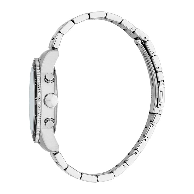 JUST CAVALLI JC1G243M0245 — стильные итальянские часы с функцией хронографаХронографФункция позволяет измерять отрезки времени с особой точностью: часы, минуты, секунды. Верным признаком хронографа является наличие на циферблате 3 дополнительных окошек-счётчиков. и секундомераСекундомерСекундоме́р — прибор, способный измерять интервалы времени с точностью до долей секунды., которые сочетают в себе элегантность и современный функционал. Круглый корпус диаметром 42 мм выполнен из нержавеющей стали, толщина корпуса составляет 11 мм, а на безельБезельВнешний ободок, закрепляющий стекло. В спортивных часах так называется поворотное кольцо с делениями на циферблате, выполняет роль таймера – замеряет отрезки времени на шкале. Неподвижный безель – элемент декора. Однонаправленно вращающийся безель на дайверских часах позволяет фиксировать моменты погружения и выныривания на поверхность. нанесено черное PVD-покрытиеPVDУльтратонкое покрытие наносится в технике вакуумного напыления, сочетает в себе нитрид титана особой прочности со слоем золота или оксида хрома. Несёт в себе декоративную или защитную функцию., что придает модели выразительный внешний вид и надежную защиту от внешних воздействий. Часы оснащены кварцевым механизмом, также обладают функцией отображения даты, что делает их удобными для ежедневного использования. Минеральное стеклоМинеральное стеклоМинеральное стекло представляет собой искусственно выращенный минерал кварца. Такое стекло отличается особой устойчивостью к повреждениям и царапинам. Уступает по некоторым качествам сапфировому стеклу. защищает часы от царапин, а водозащита 100 метров позволяет не снимать их во время плавания и занятий спортом. Стальной браслет на раскладной застёжкеРаскладная застёжкаТакой тип застёжки используется только на браслетах из металла. Она никогда не раскрывается полностью, происходит разделение на 2 и более частей. Раскладывающая застёжка снизит вероятность потери часов к минимуму. обеспечивает комфортное ношение. Стрелки и метки с люминесцентным покрытиемЛюминесцентное покрытиеПозволяет считывать показания времени в темноте. Производители наносят на стрелки, часовые индексы, безель или поверхность циферблата светонакопительный состав, дающий холодное свечение. обеспечивают отличную читаемость в любое время суток.