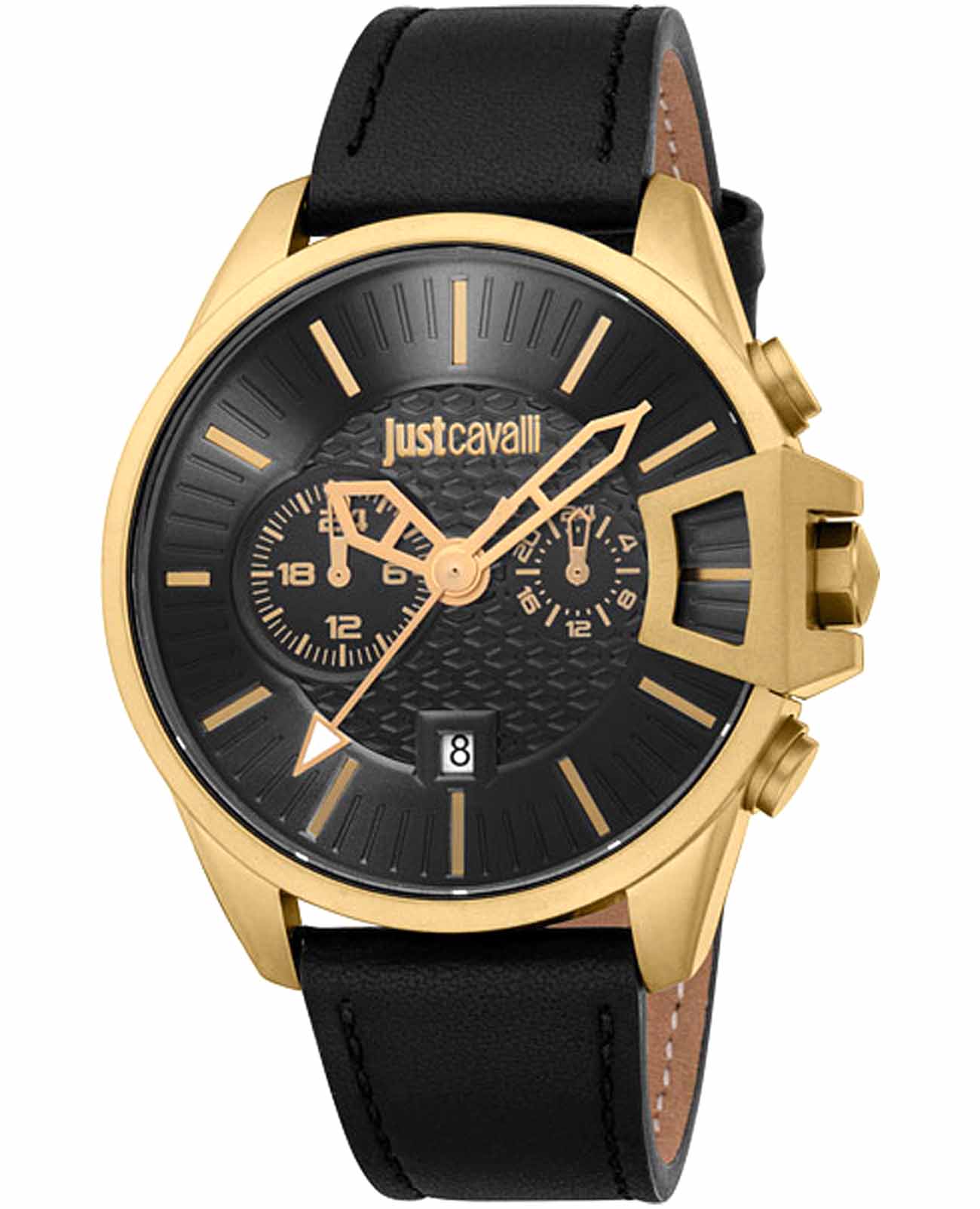 JUST CAVALLI JC1G346L0025 — стильные итальянские часы с функцией второй часовой поясВторой часовой поясФункция, позволяющая отображать время двух часовых поясов одновременно., которые сочетают в себе элегантность и современный функционал. Круглый корпус диаметром 45 мм выполнен из нержавеющей стали с PVD-покрытиеPVDУльтратонкое покрытие наносится в технике вакуумного напыления, сочетает в себе нитрид титана особой прочности со слоем золота или оксида хрома. Несёт в себе декоративную или защитную функцию., толщина корпуса составляет 12 мм, что придает модели выразительный внешний вид и надежную защиту от внешних воздействий. Часы оснащены кварцевым механизмом, также обладают функцией отображения даты, что делает их удобными для ежедневного использования. Минеральное стеклоМинеральное стеклоМинеральное стекло представляет собой искусственно выращенный минерал кварца. Такое стекло отличается особой устойчивостью к повреждениям и царапинам. Уступает по некоторым качествам сапфировому стеклу. защищает часы от царапин, а водозащита 50 метров идеально подходит для повседневного ношения. Кожаный ремешок на стандартной застёжке обеспечивает комфортное ношение.