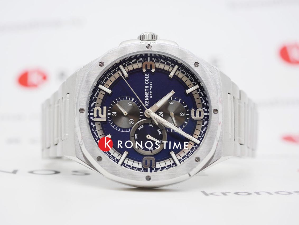 Мужские кварцевые часы-хронографХронографФункция позволяет измерять отрезки времени с особой точностью: часы, минуты, секунды. Верным признаком хронографа является наличие на циферблате 3 дополнительных окошек-счётчиков. с секундомеромСекундомерСекундоме́р — прибор, способный измерять интервалы времени с точностью до долей секунды. Kenneth Cole Dress Sport KCWGK2218704, кварцевый механизм с высокой точностью. Минеральное стеклоМинеральное стеклоМинеральное стекло представляет собой искусственно выращенный минерал кварца. Такое стекло отличается особой устойчивостью к повреждениям и царапинам. Уступает по некоторым качествам сапфировому стеклу. устойчивое к появлению царапин, обладающее высокой прозрачностью. Класс водозащиты: 30 метров, позволит защитить корпус от случайных брызг или капель дождя. Корпус и безельБезельВнешний ободок, закрепляющий стекло. В спортивных часах так называется поворотное кольцо с делениями на циферблате, выполняет роль таймера – замеряет отрезки времени на шкале. Неподвижный безель – элемент декора. Однонаправленно вращающийся безель на дайверских часах позволяет фиксировать моменты погружения и выныривания на поверхность. изготовлен из нержавеющей стали. Индикация даты и дня недели. Стрелки и метки с люминесцентным покрытиемЛюминесцентное покрытиеПозволяет считывать показания времени в темноте. Производители наносят на стрелки, часовые индексы, безель или поверхность циферблата светонакопительный состав, дающий холодное свечение.. Браслет из стали с раскладной застёжкойРаскладная застёжкаТакой тип застёжки используется только на браслетах из металла. Она никогда не раскрывается полностью, происходит разделение на 2 и более частей. Раскладывающая застёжка снизит вероятность потери часов к минимуму..