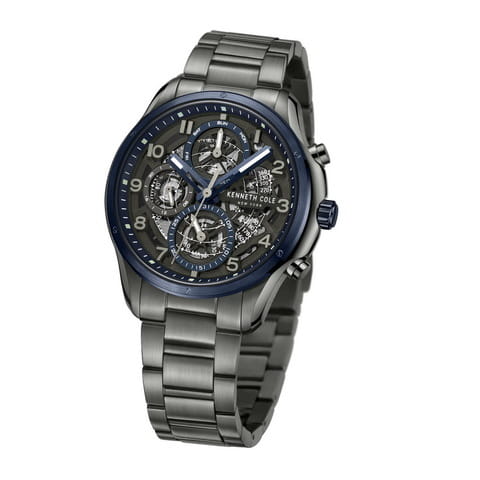 Мужские кварцевые часы-хронографХронографФункция позволяет измерять отрезки времени с особой точностью: часы, минуты, секунды. Верным признаком хронографа является наличие на циферблате 3 дополнительных окошек-счётчиков. с секундомеромСекундомерСекундоме́р — прибор, способный измерять интервалы времени с точностью до долей секунды. Kenneth Cole Dress Sport KCWGK2218903, кварцевый механизм с высокой точностью. Класс водозащиты: 30 метров, позволит защитить корпус от случайных брызг или капель дождя. Корпус и безельБезельВнешний ободок, закрепляющий стекло. В спортивных часах так называется поворотное кольцо с делениями на циферблате, выполняет роль таймера – замеряет отрезки времени на шкале. Неподвижный безель – элемент декора. Однонаправленно вращающийся безель на дайверских часах позволяет фиксировать моменты погружения и выныривания на поверхность. изготовлен из стали с IP-покрытиемIP-покрытиеМетод ионного напыления. Демонстрирует повышенную устойчивость к истиранию, окислению и химическим веществам. Под воздействием высокого давления и температуры около 1500°C молекулы металла надёжно соединяются с частицами корпуса часов.. Индикация даты и дня недели. Стрелки и метки с люминесцентным покрытиемЛюминесцентное покрытиеПозволяет считывать показания времени в темноте. Производители наносят на стрелки, часовые индексы, безель или поверхность циферблата светонакопительный состав, дающий холодное свечение.. Браслет из стали с IP-покрытиемIP-покрытиеМетод ионного напыления. Демонстрирует повышенную устойчивость к истиранию, окислению и химическим веществам. Под воздействием высокого давления и температуры около 1500°C молекулы металла надёжно соединяются с частицами корпуса часов. и с раскладной застёжкойРаскладная застёжкаТакой тип застёжки используется только на браслетах из металла. Она никогда не раскрывается полностью, происходит разделение на 2 и более частей. Раскладывающая застёжка снизит вероятность потери часов к минимуму..