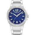 Женские кварцевые часы Kenneth Cole — это элегантный и выразительный аксессуар. Корпус диаметром 32 мм выполнен из нержавеющей стали 316L. Циферблат синего цвета оформлен штрихами, арабской цифрой 12 и украшен цирконами. БезельБезельВнешний ободок, закрепляющий стекло. В спортивных часах так называется поворотное кольцо с делениями на циферблате, выполняет роль таймера – замеряет отрезки времени на шкале. Неподвижный безель – элемент декора. Однонаправленно вращающийся безель на дайверских часах позволяет фиксировать моменты погружения и выныривания на поверхность. инкрустирован кристаллами. Окошко даты расположено в положении 6 часов. Циферблат защищён минеральным стекломМинеральное стеклоМинеральное стекло представляет собой искусственно выращенный минерал кварца. Такое стекло отличается особой устойчивостью к повреждениям и царапинам. Уступает по некоторым качествам сапфировому стеклу. с антибликовым покрытиемАнтибликовое покрытиеСлой оксида металла в 0,13-0,3 микрон, благодаря которому стекло часов не бликует и не отражает свет. Антибликовое покрытие уменьшает отражение света в 10 раз, обеспечивая отличную читаемость показателей циферблата.. Механизм — кварцевый калибр TMI VX32. Часы оснащены стальным браслетом на раскладной застёжкеРаскладная застёжкаТакой тип застёжки используется только на браслетах из металла. Она никогда не раскрывается полностью, происходит разделение на 2 и более частей. Раскладывающая застёжка снизит вероятность потери часов к минимуму.. Водонепроницаемость 30 м позволяет использовать часы в повседневных условиях. Идеальный выбор для тех, кто ценит стиль, блеск и американское качество.