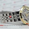 Женские механические часы с автоподзаводом Kenneth Cole KCWLL0047403 — это элегантный аксессуар, сочетающий женственность и современный дизайн. Корпус диаметром 36 мм выполнен из нержавеющей стали. Циферблат золотистого цвета частично скелетонизирован, что позволяет наблюдать за работой механизма, добавляя модели инженерной изысканности. Циферблат защищён минеральным стекломМинеральное стеклоМинеральное стекло представляет собой искусственно выращенный минерал кварца. Такое стекло отличается особой устойчивостью к повреждениям и царапинам. Уступает по некоторым качествам сапфировому стеклу. и оформлен метками в виде арабских цифр и штрихов. БезельБезельВнешний ободок, закрепляющий стекло. В спортивных часах так называется поворотное кольцо с делениями на циферблате, выполняет роль таймера – замеряет отрезки времени на шкале. Неподвижный безель – элемент декора. Однонаправленно вращающийся безель на дайверских часах позволяет фиксировать моменты погружения и выныривания на поверхность. с IP-покрытиемIP-покрытиеМетод ионного напыления. Демонстрирует повышенную устойчивость к истиранию, окислению и химическим веществам. Под воздействием высокого давления и температуры около 1500°C молекулы металла надёжно соединяются с частицами корпуса часов.. Часы оснащены стальным браслетом с раскладной застёжкойРаскладная застёжкаТакой тип застёжки используется только на браслетах из металла. Она никогда не раскрывается полностью, происходит разделение на 2 и более частей. Раскладывающая застёжка снизит вероятность потери часов к минимуму.. Водонепроницаемость 30 м позволяет использовать часы в повседневных условиях, защищая от случайных брызг и капель дождя. Сочетание лаконичного стиля и надёжного механизма делает эти часы универсальным выбором для повседневного и делового образа.