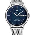 Российские мужские механические часы Космос K 043.10.36 с автоподзаводом оснащены корпусом из нержавеющей стали 316L диаметром 41 мм и защищены минеральным стекломМинеральное стеклоМинеральное стекло представляет собой искусственно выращенный минерал кварца. Такое стекло отличается особой устойчивостью к повреждениям и царапинам. Уступает по некоторым качествам сапфировому стеклу.. Дополнен функциями отображения даты и дня недели. Заводная головка декорирована логотипом бренда в виде стилизованного изображения планеты. Часы имеют водонепроницаемость 50 метров, позволит защитить корпус от случайных брызг или капель дождя. Модель комплектуется браслетом из нержавеющей стали 316L с миланским плетением на раскладном замкеРаскладной замокДанный вариант застежки используется только на часах с металлическим браслетом. Отличительная особенность такого крепления в том, что длина браслета становится универсальной и вы можете самостоятельно отрегулировать нужный вам размер – застежка просто двигается по браслету часов.. Специальные крепежи позволяют легко заменить браслет на часах самостоятельно. Прочный корпус и надежный механизм делают эти часы универсальным аксессуаром для повседневного использования. Уникальный дизайн и высокое качество материалов подчеркивают индивидуальность владельца.