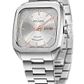Мужские наручные часы Космос Марсоход K 213.10.33 — это уникальная лимитированная серия, посвященная аппарату, способному передвигаться по поверхности Красной планеты. Марсоход ассоциируется с брутальностью, мастерством и технической сложностью. Наша страна дважды запускала подобные аппараты еще в 70-х годах прошлого века. Дизайн часов серии Марсоход вдохновлен лучшими работами советских мастеров, сочетая современные технологии часового искусства с обаянием стиля ретро. Корпус в форме квадрата с закругленными углами выполнен из нержавеющей стали марки 316L, украшенной зеркальной полировкой и сатинированием. Удобная заводная головка имеет форму гайки, что добавляет модели индустриальный шарм. Задняя крышка прозрачная, закрепленная на четырех винтах, и позволяет увидеть работу механизма TMI с подвижным ротором, на котором гравируется надпись «Сделано в России». Также здесь представлена гравировка с изображением космонавта, придающая часам особую значимость. Водостойкость достигает 10 атм (WR100), что позволяет использовать часы при плавании и других водных видах спорта. На задней крышке указан индивидуальный номер модели в формате от 01/50 до 50/50 (первый выпуск) или от 051/200 до 200/200 (второй выпуск). Объемный циферблат состоит из двух уровней. В центре движутся три стрелки, часовая и минутная из которых имеют люминесцентное покрытиеЛюминесцентное покрытиеПозволяет считывать показания времени в темноте. Производители наносят на стрелки, часовые индексы, безель или поверхность циферблата светонакопительный состав, дающий холодное свечение., позволяющее определять время даже в темноте. Индексы накладные, как и стальная рамка, выделяющая сдвоенное окошко даты и дня недели, где день недели отображается на двух языках — русском и английском. Циферблат защищен прочным сапфировым стеклом с антибликовым покрытиемСапфировое стеклоПрочный и надёжный материал из кристалла сапфира синтетического происхождения, характеризующийся особой твёрдостью и устойчивостью к царапинам и повреждениям., обеспечивающим отличную читаемость показаний в любых условиях. Браслет изготовлен из литых стальных звеньев нержавеющей стали 316L и оснащен удобной застёжкой «бабочка» с кнопкамиЗастёжка "бабочка"Такой вид застёжки дополняется предохранителями, помогающими избежать случайного раскрытия браслета. Обладают изящным исполнением. , которая сводит к минимуму вероятность потери. Заводная головка, застежка и браслет украшены фирменным логотипом бренда. Коллекция Марсоход — идеальный выбор для ценителей истории космических достижений и современных технологий.