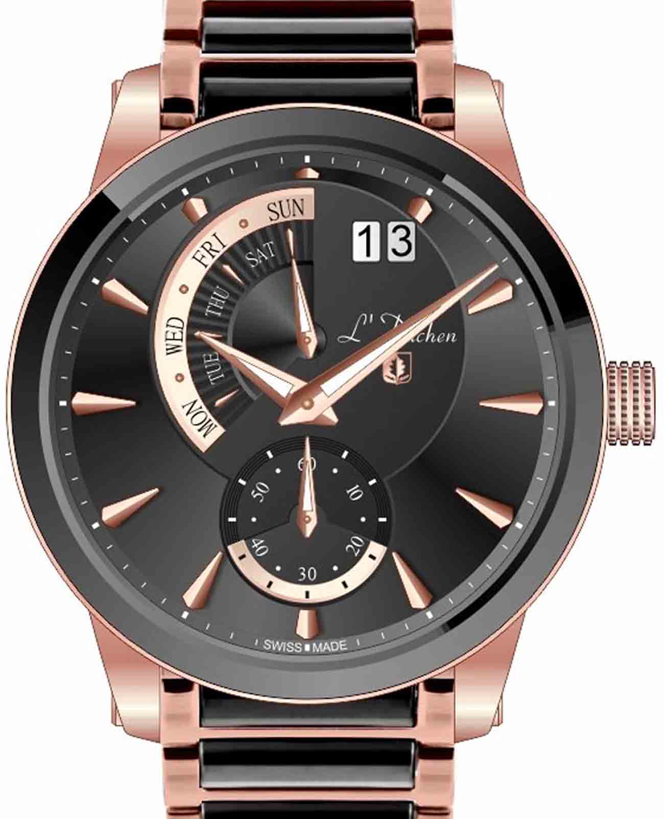 Мужские швейцарские часы L'Duchen Aerostat D 237.40.31, кварцевый механизм с высокой точностью. Сапфировое стеклоСапфировое стеклоПрочный и надёжный материал из кристалла сапфира синтетического происхождения, характеризующийся особой твёрдостью и устойчивостью к царапинам и повреждениям. устойчивое к появлению царапин, обладающее высокой прозрачностью. Корпус часов выполнен из нержавеющей стали с PVD-покрытиемPVDУльтратонкое покрытие наносится в технике вакуумного напыления, сочетает в себе нитрид титана особой прочности со слоем золота или оксида хрома. Несёт в себе декоративную или защитную функцию.. БезельБезельВнешний ободок, закрепляющий стекло. В спортивных часах так называется поворотное кольцо с делениями на циферблате, выполняет роль таймера – замеряет отрезки времени на шкале. Неподвижный безель – элемент декора. Однонаправленно вращающийся безель на дайверских часах позволяет фиксировать моменты погружения и выныривания на поверхность. из керамики. Стрелки с люминесцентным покрытиемЛюминесцентное покрытиеПозволяет считывать показания времени в темноте. Производители наносят на стрелки, часовые индексы, безель или поверхность циферблата светонакопительный состав, дающий холодное свечение.. Класс водозащиты: 100 метров, позволит плавать, нырять и заниматься другими водными видами спорта. Стальной браслет с PVD-покрытиемPVDУльтратонкое покрытие наносится в технике вакуумного напыления, сочетает в себе нитрид титана особой прочности со слоем золота или оксида хрома. Несёт в себе декоративную или защитную функцию. и керамическими вставками на застёжке «бабочка» с кнопкамиЗастёжка "бабочка"Такой вид застёжки дополняется предохранителями, помогающими избежать случайного раскрытия браслета. Обладают изящным исполнением. .