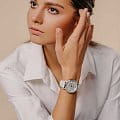 Стильные женские часы на браслете, украшенные кристаллами Swarovski.