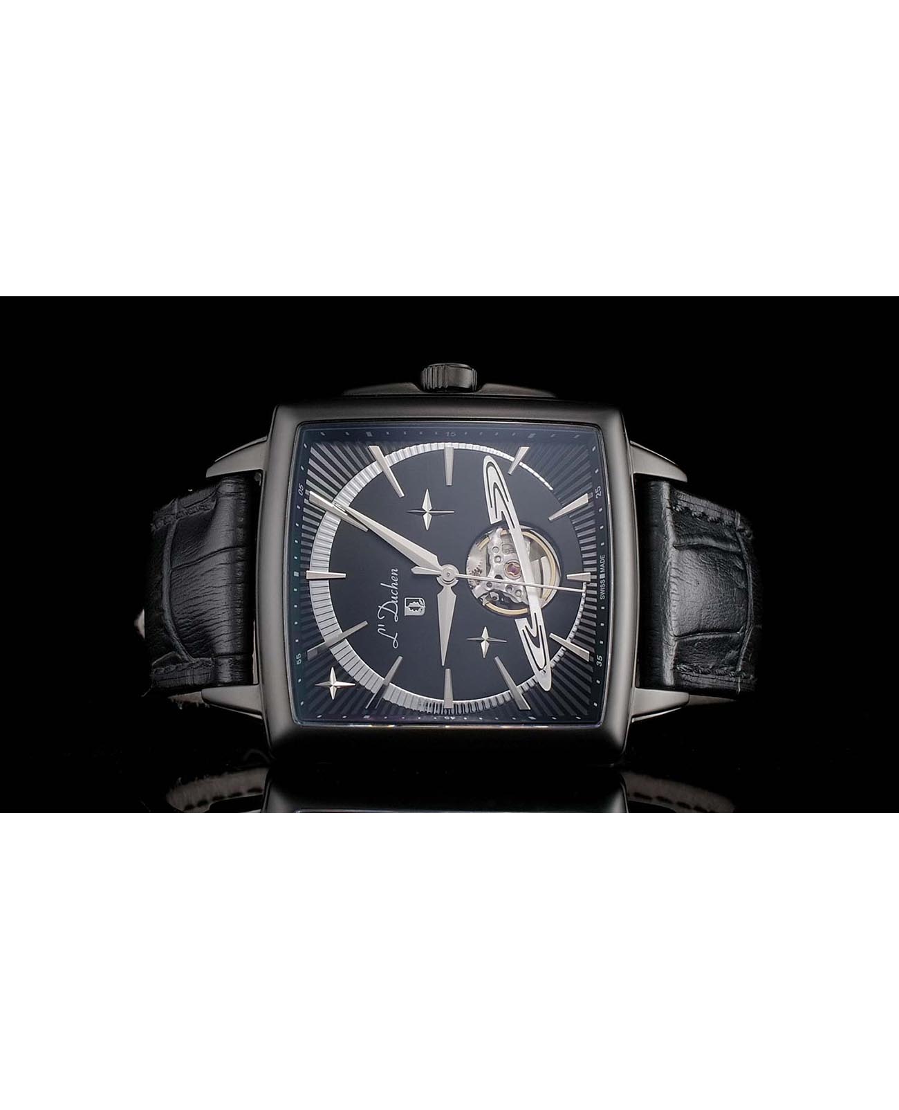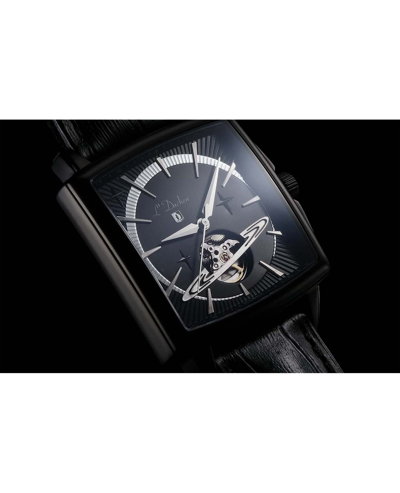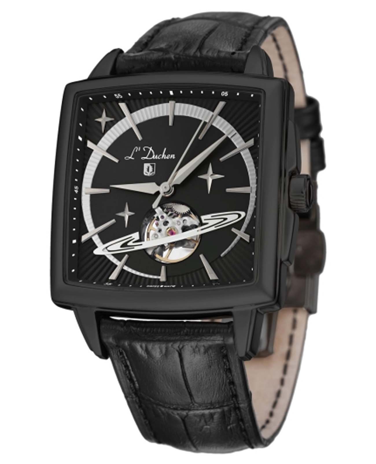 Мужские швейцарские механические с автоподзаводом L'Duchen Saturn D 444.71.31. Сапфировое стеклоСапфировое стеклоПрочный и надёжный материал из кристалла сапфира синтетического происхождения, характеризующийся особой твёрдостью и устойчивостью к царапинам и повреждениям. устойчивое к появлению царапин, обладающее высокой прозрачностью. Корпус часов выполнен из нержавеющей стали с PVD-покрытиемPVDУльтратонкое покрытие наносится в технике вакуумного напыления, сочетает в себе нитрид титана особой прочности со слоем золота или оксида хрома. Несёт в себе декоративную или защитную функцию.. Класс водозащиты: 50 метров, позволит защитить корпус от случайных брызг или капель дождя. Кожаный ремешок на застёжке «бабочка» с кнопкамиЗастёжка "бабочка"Такой вид застёжки дополняется предохранителями, помогающими избежать случайного раскрытия браслета. Обладают изящным исполнением. .