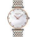Женские наручные часы Lee Cooper LC07410.520 — это элегантная модель с утончённым дизайном. Корпус диаметром 33 мм выполнен из нержавеющей стали с IP-покрытиемIP-покрытиеМетод ионного напыления. Демонстрирует повышенную устойчивость к истиранию, окислению и химическим веществам. Под воздействием высокого давления и температуры около 1500°C молекулы металла надёжно соединяются с частицами корпуса часов., что придаёт часам изысканный вид. Перламутровый циферблат украшен изящными метками из кристаллов и стрелками, обеспечивая удобное считывание времени. Циферблат защищён минеральным стекломМинеральное стеклоМинеральное стекло представляет собой искусственно выращенный минерал кварца. Такое стекло отличается особой устойчивостью к повреждениям и царапинам. Уступает по некоторым качествам сапфировому стеклу., устойчивым к царапинам. Часы работают на кварцевом механизме, обеспечивая точность хода. Браслет из нержавеющей стали с раскладной застёжкойРаскладная застёжкаТакой тип застёжки используется только на браслетах из металла. Она никогда не раскрывается полностью, происходит разделение на 2 и более частей. Раскладывающая застёжка снизит вероятность потери часов к минимуму. гарантирует комфортное ношение и надёжную фиксацию на запястье. Водозащита 30 метров защищает часы от случайных брызг и дождя, делая их подходящими для повседневного использования.