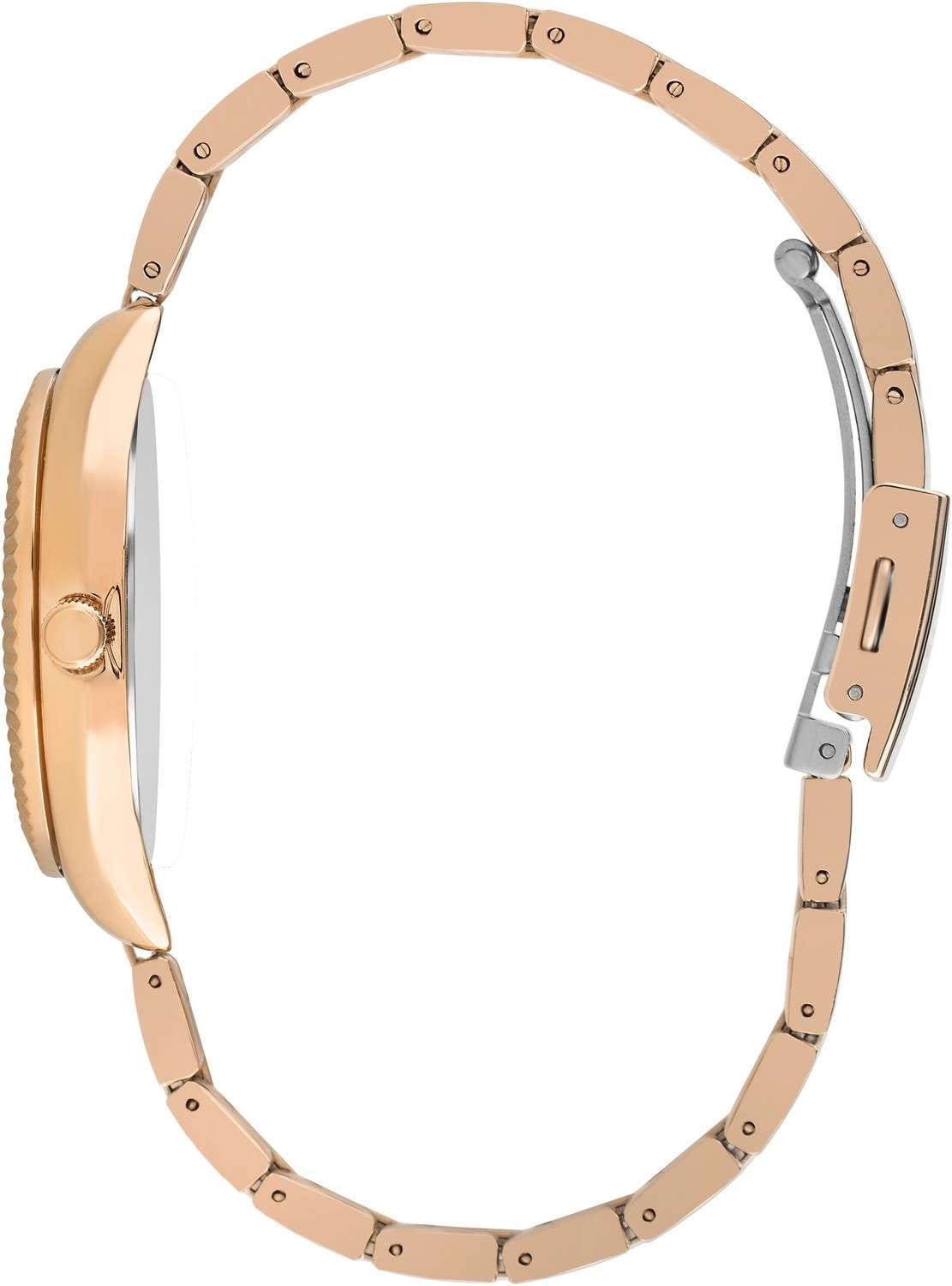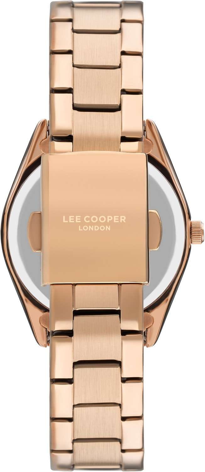Женские наручные часы Lee Cooper LC07459.430 — это элегантная модель с утончённым дизайном. Корпус диаметром 32 мм выполнен из суперметалла с IP-покрытиемIP-покрытиеМетод ионного напыления. Демонстрирует повышенную устойчивость к истиранию, окислению и химическим веществам. Под воздействием высокого давления и температуры около 1500°C молекулы металла надёжно соединяются с частицами корпуса часов., что придаёт часам изысканный вид. Серебристый циферблат украшен изящными римскими цифрами и стрелками обеспечивая удобное считывание времени. Циферблат защищён минеральным стекломМинеральное стеклоМинеральное стекло представляет собой искусственно выращенный минерал кварца. Такое стекло отличается особой устойчивостью к повреждениям и царапинам. Уступает по некоторым качествам сапфировому стеклу., устойчивым к царапинам. Часы работают на кварцевом механизме, обеспечивая точность хода. Браслет из нержавеющей стали с раскладной застёжкойРаскладная застёжкаТакой тип застёжки используется только на браслетах из металла. Она никогда не раскрывается полностью, происходит разделение на 2 и более частей. Раскладывающая застёжка снизит вероятность потери часов к минимуму. гарантирует комфортное ношение и надёжную фиксацию на запястье. Водозащита 30 метров защищает часы от случайных брызг и дождя, делая их подходящими для повседневного использования. Метки покрыты люминесцентным покрытиемЛюминесцентное покрытиеПозволяет считывать показания времени в темноте. Производители наносят на стрелки, часовые индексы, безель или поверхность циферблата светонакопительный состав, дающий холодное свечение., обеспечивая удобное считывание показаний в условиях недостаточного освещения.