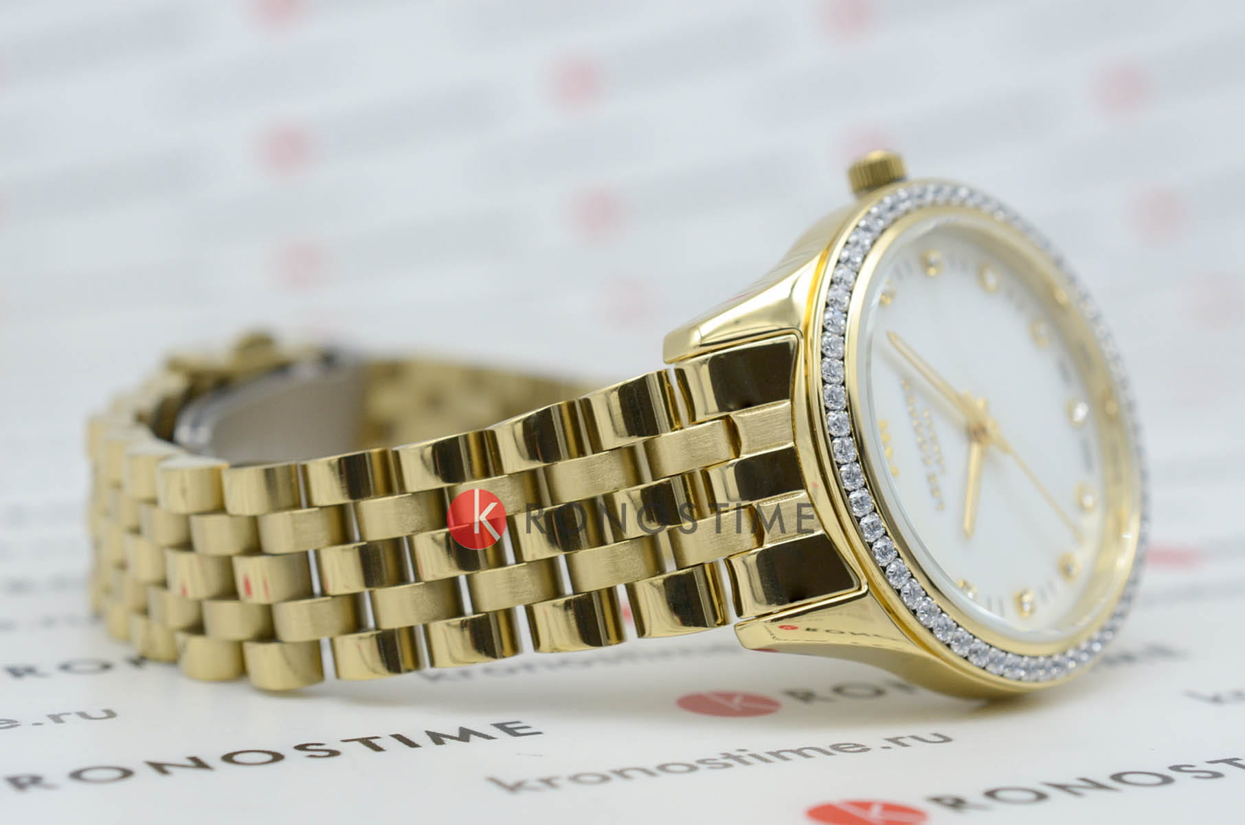 Женские наручные часы Lee Cooper LC07483.120 — это элегантная модель с утончённым дизайном. Корпус диаметром 35 мм выполнен из суперметалла с IP-покрытиемIP-покрытиеМетод ионного напыления. Демонстрирует повышенную устойчивость к истиранию, окислению и химическим веществам. Под воздействием высокого давления и температуры около 1500°C молекулы металла надёжно соединяются с частицами корпуса часов., что придаёт часам изысканный вид. Серебристый циферблат украшен изящными стрелками и вставками из циркония в виде меток, обеспечивая удобное считывание времени. Циферблат защищён минеральным стекломМинеральное стеклоМинеральное стекло представляет собой искусственно выращенный минерал кварца. Такое стекло отличается особой устойчивостью к повреждениям и царапинам. Уступает по некоторым качествам сапфировому стеклу., устойчивым к царапинам. Часы работают на кварцевом механизме, обеспечивая точность хода. Браслет из нержавеющей стали с раскладной застёжкойРаскладная застёжкаТакой тип застёжки используется только на браслетах из металла. Она никогда не раскрывается полностью, происходит разделение на 2 и более частей. Раскладывающая застёжка снизит вероятность потери часов к минимуму. гарантирует комфортное ношение и надёжную фиксацию на запястье. Водозащита 30 метров защищает часы от случайных брызг и дождя, делая их подходящими для повседневного использования. БезельБезельВнешний ободок, закрепляющий стекло. В спортивных часах так называется поворотное кольцо с делениями на циферблате, выполняет роль таймера – замеряет отрезки времени на шкале. Неподвижный безель – элемент декора. Однонаправленно вращающийся безель на дайверских часах позволяет фиксировать моменты погружения и выныривания на поверхность. инкрустирован кристаллами. Стрелки покрыты люминесцентным покрытиемЛюминесцентное покрытиеПозволяет считывать показания времени в темноте. Производители наносят на стрелки, часовые индексы, безель или поверхность циферблата светонакопительный состав, дающий холодное свечение., обеспечивая удобное считывание показаний в условиях недостаточного освещения.