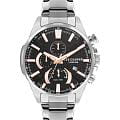 Мужские часы Lee Cooper LC07801.350 выполнены в классическом стиле и сочетают строгий дизайн с расширенным функционалом. Модель оснащена кварцевым механизмом, обеспечивающим точность хода и минимальное обслуживание. Корпус круглой формы имеет размер 46 мм, изготовлен из суперметалла. Циферблат черного цвета дополнен индексами для чёткого отсчёта времени, а также украшен стрелками и метками с люминесцентным покрытиемЛюминесцентное покрытиеПозволяет считывать показания времени в темноте. Производители наносят на стрелки, часовые индексы, безель или поверхность циферблата светонакопительный состав, дающий холодное свечение., гармонично дополняющим общий дизайн модели.Часы оснащены функциями отображения даты, дня недели, 24-часового индикатора и второго часового поясаВторой часовой поясФункция, позволяющая отображать время двух часовых поясов одновременно., что делает их особенно удобными для повседневного использования. Защиту циферблата обеспечивает минеральное стеклоМинеральное стеклоМинеральное стекло представляет собой искусственно выращенный минерал кварца. Такое стекло отличается особой устойчивостью к повреждениям и царапинам. Уступает по некоторым качествам сапфировому стеклу., устойчивое к мелким механическим повреждениям. Браслет из стали оснащен раскладной застёжкойРаскладная застёжкаТакой тип застёжки используется только на браслетах из металла. Она никогда не раскрывается полностью, происходит разделение на 2 и более частей. Раскладывающая застёжка снизит вероятность потери часов к минимуму., обеспечивающим комфортное и безопасное ношение. Водозащита 5 АТМ позволяет использовать часы в условиях случайного контакта с водой — например, при мытье рук или под дождём. Это сочетание классического дизайна, прочности материалов и широкой функциональности для уверенных в себе мужчин.