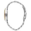 Женские часы Lee Cooper LC07821.220 выполнены в классическом стиле и сочетают строгий дизайн с надёжным механизмом. Модель оснащена кварцевым механизмом, обеспечивающим точность хода и минимальное обслуживание. Корпус круглой формы имеет размер 36 мм, изготовлен из суперметалла с изысканным неподвижным безелемБезельВнешний ободок, закрепляющий стекло. В спортивных часах так называется поворотное кольцо с делениями на циферблате, выполняет роль таймера – замеряет отрезки времени на шкале. Неподвижный безель – элемент декора. Однонаправленно вращающийся безель на дайверских часах позволяет фиксировать моменты погружения и выныривания на поверхность. с IP-покрытиемIP-покрытиеМетод ионного напыления. Демонстрирует повышенную устойчивость к истиранию, окислению и химическим веществам. Под воздействием высокого давления и температуры около 1500°C молекулы металла надёжно соединяются с частицами корпуса часов., гарантирует комфорт при ношении. Перламутровый циферблат дополнен штрихами для чёткого отсчёта времени. Защиту циферблата обеспечивает минеральное стеклоМинеральное стеклоМинеральное стекло представляет собой искусственно выращенный минерал кварца. Такое стекло отличается особой устойчивостью к повреждениям и царапинам. Уступает по некоторым качествам сапфировому стеклу., устойчивое к мелким механическим повреждениям. Стальной браслет с частичным IP-покрытиемIP-покрытиеМетод ионного напыления. Демонстрирует повышенную устойчивость к истиранию, окислению и химическим веществам. Под воздействием высокого давления и температуры около 1500°C молекулы металла надёжно соединяются с частицами корпуса часов. на раскладной застёжкеРаскладная застёжкаТакой тип застёжки используется только на браслетах из металла. Она никогда не раскрывается полностью, происходит разделение на 2 и более частей. Раскладывающая застёжка снизит вероятность потери часов к минимуму. гарантирует удобную посадку и надёжную фиксацию на запястье. Водозащита 30WR позволяет использовать часы в повседневных условиях без риска повреждения от случайных брызг воды. Это сочетание классического дизайна, прочности материалов и качества исполнения для уверенных в себе женщин.