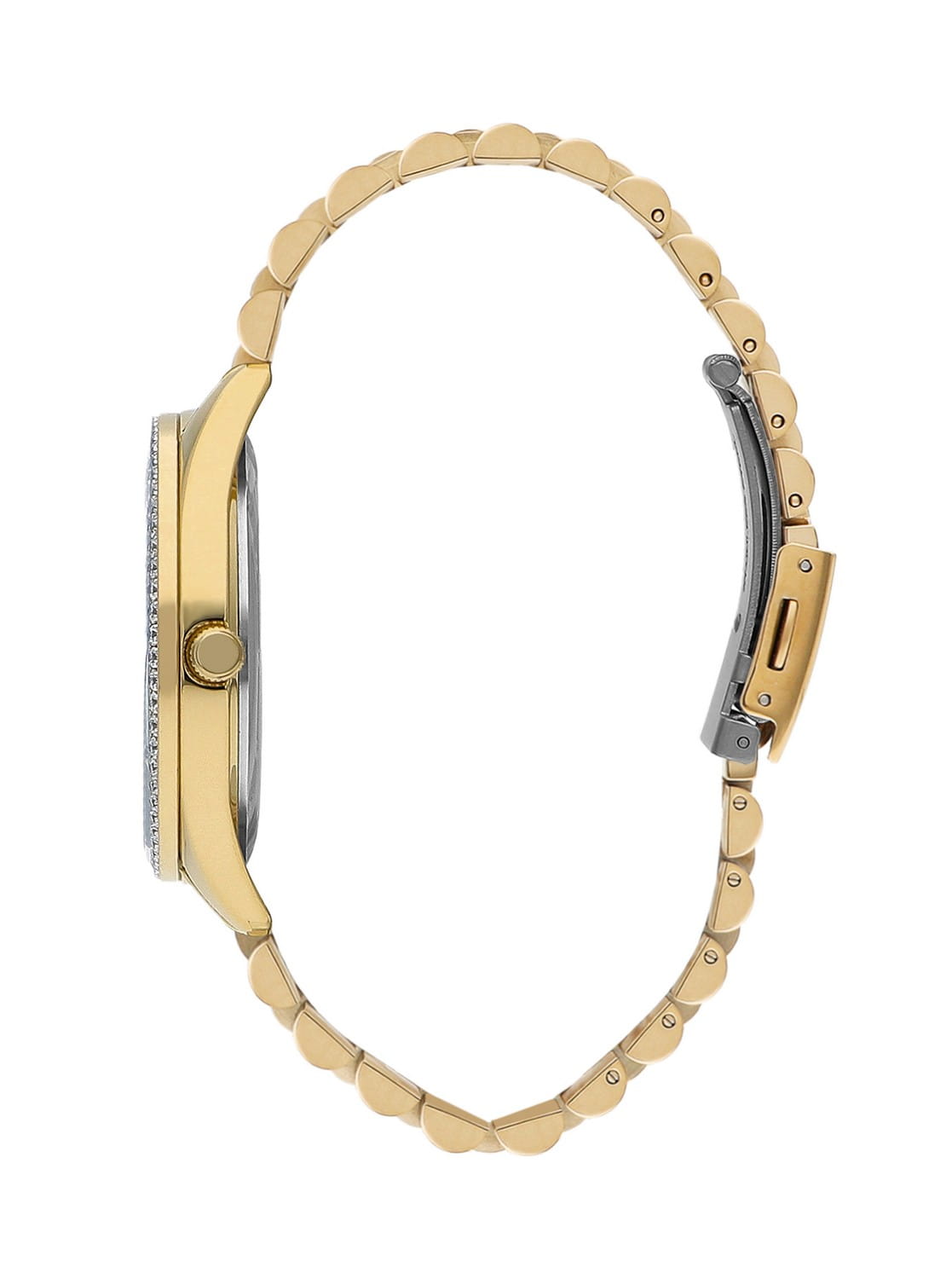 Женские часы Lee Cooper LC07831.130 выполнены в классическом стиле и сочетают строгий дизайн с надёжным механизмом. Модель оснащена кварцевым механизмом, обеспечивающим точность хода и минимальное обслуживание. Корпус круглой формы имеет размер 36 мм, изготовлен из суперметалла с IP-покрытиемIP-покрытиеМетод ионного напыления. Демонстрирует повышенную устойчивость к истиранию, окислению и химическим веществам. Под воздействием высокого давления и температуры около 1500°C молекулы металла надёжно соединяются с частицами корпуса часов. и с изысканным неподвижным безелемБезельВнешний ободок, закрепляющий стекло. В спортивных часах так называется поворотное кольцо с делениями на циферблате, выполняет роль таймера – замеряет отрезки времени на шкале. Неподвижный безель – элемент декора. Однонаправленно вращающийся безель на дайверских часах позволяет фиксировать моменты погружения и выныривания на поверхность. с вставками из циркона, гарантирует комфорт при ношении. Циферблат дополнен изящными вставками из циркона для чёткого отсчёта времени. Защиту циферблата обеспечивает минеральное стеклоМинеральное стеклоМинеральное стекло представляет собой искусственно выращенный минерал кварца. Такое стекло отличается особой устойчивостью к повреждениям и царапинам. Уступает по некоторым качествам сапфировому стеклу., устойчивое к мелким механическим повреждениям. Стрелки с люминесцентным покрытиемЛюминесцентное покрытиеПозволяет считывать показания времени в темноте. Производители наносят на стрелки, часовые индексы, безель или поверхность циферблата светонакопительный состав, дающий холодное свечение.. Стальной браслет с IP-покрытиемIP-покрытиеМетод ионного напыления. Демонстрирует повышенную устойчивость к истиранию, окислению и химическим веществам. Под воздействием высокого давления и температуры около 1500°C молекулы металла надёжно соединяются с частицами корпуса часов. на раскладной застёжкеРаскладная застёжкаТакой тип застёжки используется только на браслетах из металла. Она никогда не раскрывается полностью, происходит разделение на 2 и более частей. Раскладывающая застёжка снизит вероятность потери часов к минимуму. гарантирует удобную посадку и надёжную фиксацию на запястье. Водозащита 30WR позволяет использовать часы в повседневных условиях без риска повреждения от случайных брызг воды. Это сочетание классического дизайна, прочности материалов и качества исполнения для уверенных в себе женщин.