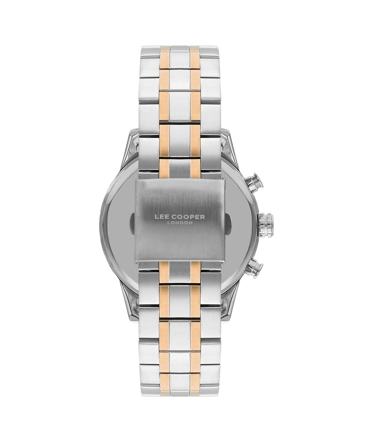 Мужские часы Lee Cooper LC07836.540 — это стильное сочетание элегантности и современного дизайна. Изысканный корпус диаметром 45 мм выполнен из суперметалла, который придает модели особый изысканный вид. Циферблат защищен минеральным стекломМинеральное стеклоМинеральное стекло представляет собой искусственно выращенный минерал кварца. Такое стекло отличается особой устойчивостью к повреждениям и царапинам. Уступает по некоторым качествам сапфировому стеклу., обеспечивающим устойчивость к царапинам. Метки в виде штрихов. Часы оснащены надежным кварцевым механизмом, а стальной браслет на раскладной застёжкеРаскладная застёжкаТакой тип застёжки используется только на браслетах из металла. Она никогда не раскрывается полностью, происходит разделение на 2 и более частей. Раскладывающая застёжка снизит вероятность потери часов к минимуму. гарантирует комфортную посадку на запястье. Стрелки и метки с люминесцентным покрытиемЛюминесцентное покрытиеПозволяет считывать показания времени в темноте. Производители наносят на стрелки, часовые индексы, безель или поверхность циферблата светонакопительный состав, дающий холодное свечение. позволяют легко считывать время даже в условиях недостаточного освещения. Мультифункциональная модель с индикацией даты, дня недели, со вторым часовым поясомВторой часовой поясФункция, позволяющая отображать время двух часовых поясов одновременно.. Водозащита 50 метров позволит защитить корпус от случайных брызг или капель дождя. Lee Cooper — отличный выбор для тех, кто ценит утонченность и качество.