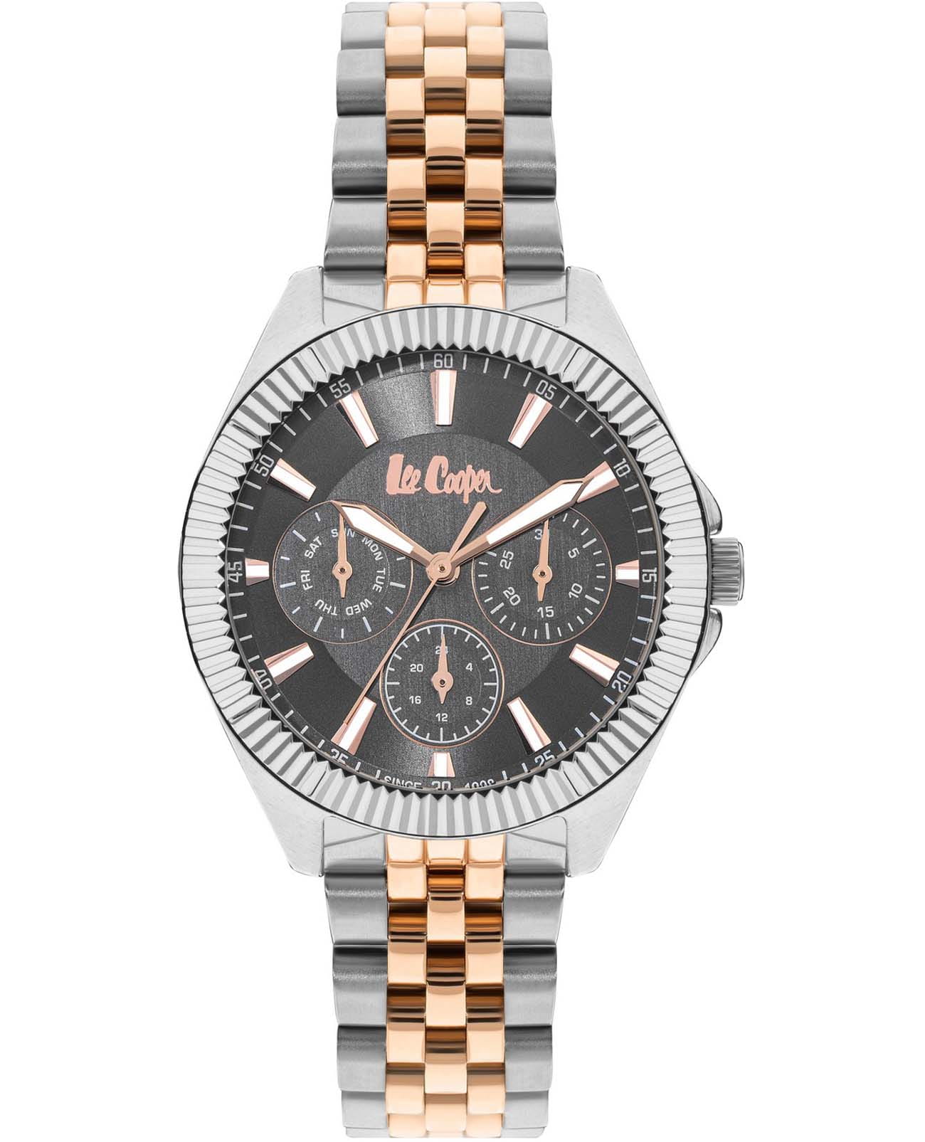 Женские часы Lee Cooper LC07837.560 — это стильное сочетание элегантности и современного дизайна. Корпус диаметром 36 мм выполнен из суперметалла серебристого цвета, придающий модели особый блеск. Изысканный циферблат защищен минеральным стекломМинеральное стеклоМинеральное стекло представляет собой искусственно выращенный минерал кварца. Такое стекло отличается особой устойчивостью к повреждениям и царапинам. Уступает по некоторым качествам сапфировому стеклу., обеспечивающим устойчивость к царапинам. Метки в виде штрихов. Вынесенный циферблат с 24-х часовым указателем времени, индикацией даты и дня недели. Стрелки и метки с люминесцентным покрытиемЛюминесцентное покрытиеПозволяет считывать показания времени в темноте. Производители наносят на стрелки, часовые индексы, безель или поверхность циферблата светонакопительный состав, дающий холодное свечение. позволяют легко считывать время даже в условиях недостаточного освещения.Часы оснащены надежным кварцевым механизмом, а стальной браслет с частичным IP-покрытиемIP-покрытиеМетод ионного напыления. Демонстрирует повышенную устойчивость к истиранию, окислению и химическим веществам. Под воздействием высокого давления и температуры около 1500°C молекулы металла надёжно соединяются с частицами корпуса часов. на раскладной застёжкеРаскладная застёжкаТакой тип застёжки используется только на браслетах из металла. Она никогда не раскрывается полностью, происходит разделение на 2 и более частей. Раскладывающая застёжка снизит вероятность потери часов к минимуму. гарантирует комфортную посадку на запястье. Водозащита 50 метров защищает модель от случайных брызг и дождя. Lee Cooper  — отличный выбор для тех, кто ценит утонченность и качество.