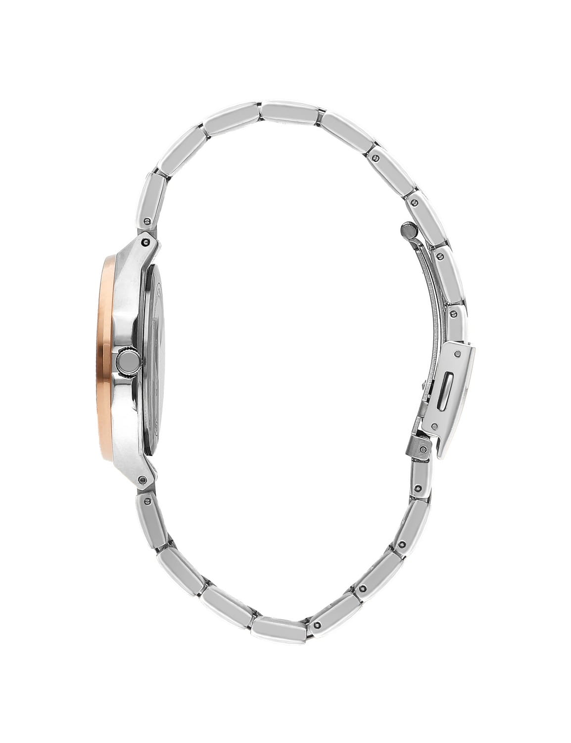 Женские наручные часы Lee Cooper LC07844.530 оснащены точным кварцевым механизмом, обеспечивающим высокую надежность и точность хода. Корпус часов изготовлен из суперметалла с неподвижным безелемБезельВнешний ободок, закрепляющий стекло. В спортивных часах так называется поворотное кольцо с делениями на циферблате, выполняет роль таймера – замеряет отрезки времени на шкале. Неподвижный безель – элемент декора. Однонаправленно вращающийся безель на дайверских часах позволяет фиксировать моменты погружения и выныривания на поверхность. с IP-покрытиемIP-покрытиеМетод ионного напыления. Демонстрирует повышенную устойчивость к истиранию, окислению и химическим веществам. Под воздействием высокого давления и температуры около 1500°C молекулы металла надёжно соединяются с частицами корпуса часов., что гарантирует долговечность и устойчивость к повреждениям. Три субдисплея отображают дату, день недели и 24-часовой формат времени, что добавляет функциональности и практичности. Для защиты циферблата используется минеральное стеклоМинеральное стеклоМинеральное стекло представляет собой искусственно выращенный минерал кварца. Такое стекло отличается особой устойчивостью к повреждениям и царапинам. Уступает по некоторым качествам сапфировому стеклу., устойчивое к царапинам и механическим повреждениям. Интегрированный браслет изготовлен из нержавеющей стали с IP-покрытиемIP-покрытиеМетод ионного напыления. Демонстрирует повышенную устойчивость к истиранию, окислению и химическим веществам. Под воздействием высокого давления и температуры около 1500°C молекулы металла надёжно соединяются с частицами корпуса часов., которая славится своей долговечностью и возможностью полировки. Метки покрыты люминесцентным покрытиемЛюминесцентное покрытиеПозволяет считывать показания времени в темноте. Производители наносят на стрелки, часовые индексы, безель или поверхность циферблата светонакопительный состав, дающий холодное свечение., обеспечивающим отличную читаемость в темноте. Браслет гармонично дополняет дизайн часов и обеспечивает комфортное ношение в течение дня благодаря раскладной застёжкеРаскладная застёжкаТакой тип застёжки используется только на браслетах из металла. Она никогда не раскрывается полностью, происходит разделение на 2 и более частей. Раскладывающая застёжка снизит вероятность потери часов к минимуму.. Эти часы сочетают в себе стиль и функциональность, что делает их универсальным аксессуаром, подходящим к любому образу. Модель станет прекрасным подарком. Часы обладают водонепроницаемостью до 50 метров (5 АТМ), что позволяет использовать их в повседневной жизни, включая контакт с водой при мытье рук или дожде.