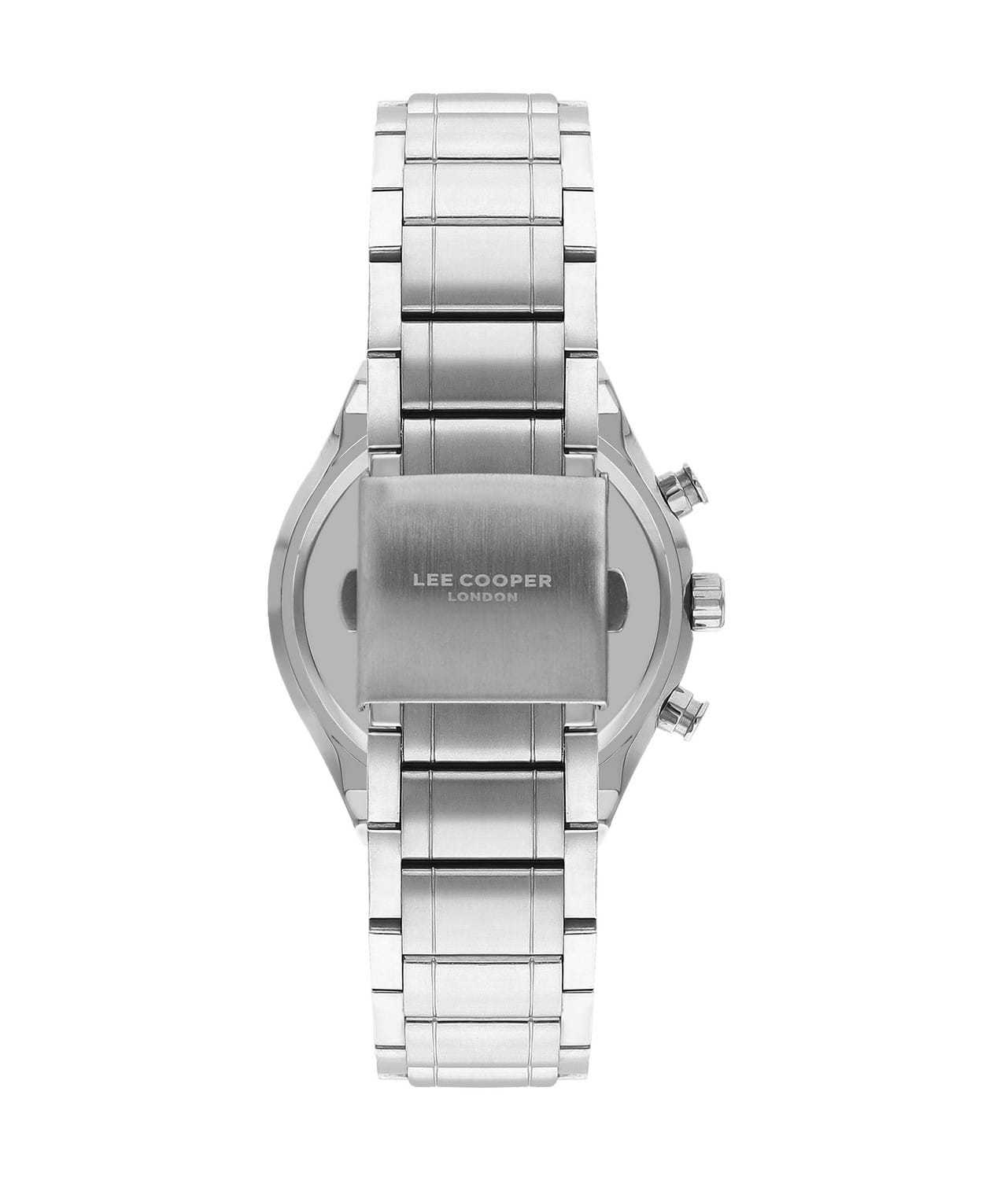 Мужские часы Lee Cooper LC07853.340 — это стильный аксессуар, сочетающий в себе классический дизайн и современные функции. Эти часы идеально подойдут для тех, кто ценит элегантность и практичность в повседневной жизни. Круглый корпус диаметром 43 мм выполнен из суперметалла серебристого цвета. Циферблат защищен минеральным стекломМинеральное стеклоМинеральное стекло представляет собой искусственно выращенный минерал кварца. Такое стекло отличается особой устойчивостью к повреждениям и царапинам. Уступает по некоторым качествам сапфировому стеклу., обеспечивающим устойчивость к царапинам. Часы оснащены надежным кварцевым механизмом, а элегантный стальной браслет на раскладной застёжкеРаскладная застёжкаТакой тип застёжки используется только на браслетах из металла. Она никогда не раскрывается полностью, происходит разделение на 2 и более частей. Раскладывающая застёжка снизит вероятность потери часов к минимуму. гарантирует комфортную посадку на запястье. Часы с люминесцентным покрытиемЛюминесцентное покрытиеПозволяет считывать показания времени в темноте. Производители наносят на стрелки, часовые индексы, безель или поверхность циферблата светонакопительный состав, дающий холодное свечение. позволяют легко считывать время даже в условиях недостаточного освещения. Окошко даты находится в положении 4  часов. Водозащита 50 метров позволит защитить корпус от случайных брызг или капель дождя. Мультифункциональная модель с 24-х часовым индикатором и хронографомХронографФункция позволяет измерять отрезки времени с особой точностью: часы, минуты, секунды. Верным признаком хронографа является наличие на циферблате 3 дополнительных окошек-счётчиков.. Lee Cooper  — отличный выбор для тех, кто ценит утонченность и качество.