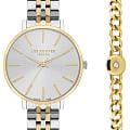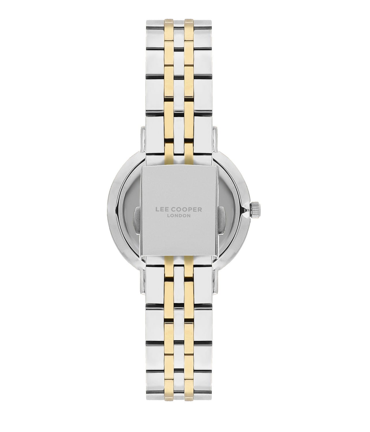 Женские часы Lee Cooper LC07857.230 — это стильное сочетание элегантности и современного дизайна. Изящный круглый корпус диаметром 34 мм выполнен из суперметалла с безелемБезельВнешний ободок, закрепляющий стекло. В спортивных часах так называется поворотное кольцо с делениями на циферблате, выполняет роль таймера – замеряет отрезки времени на шкале. Неподвижный безель – элемент декора. Однонаправленно вращающийся безель на дайверских часах позволяет фиксировать моменты погружения и выныривания на поверхность. с IP-покрытиемIP-покрытиеМетод ионного напыления. Демонстрирует повышенную устойчивость к истиранию, окислению и химическим веществам. Под воздействием высокого давления и температуры около 1500°C молекулы металла надёжно соединяются с частицами корпуса часов. золотого цвета, что придает модели особый блеск. Серебристый циферблат защищен минеральным стекломМинеральное стеклоМинеральное стекло представляет собой искусственно выращенный минерал кварца. Такое стекло отличается особой устойчивостью к повреждениям и царапинам. Уступает по некоторым качествам сапфировому стеклу., обеспечивающим устойчивость к царапинам. Метки в виде штрихов. Часы оснащены надежным кварцевым механизмом, а стальной браслет с частичным IP-покрытиемIP-покрытиеМетод ионного напыления. Демонстрирует повышенную устойчивость к истиранию, окислению и химическим веществам. Под воздействием высокого давления и температуры около 1500°C молекулы металла надёжно соединяются с частицами корпуса часов. на раскладной застёжкеРаскладная застёжкаТакой тип застёжки используется только на браслетах из металла. Она никогда не раскрывается полностью, происходит разделение на 2 и более частей. Раскладывающая застёжка снизит вероятность потери часов к минимуму. гарантирует комфортную посадку на запястье. Водозащита 30 метров защищает модель от случайных брызг и дождя. В комплекте к часам идет дополнительный браслет. Lee Cooper — отличный выбор для тех, кто ценит утонченность и качество.
