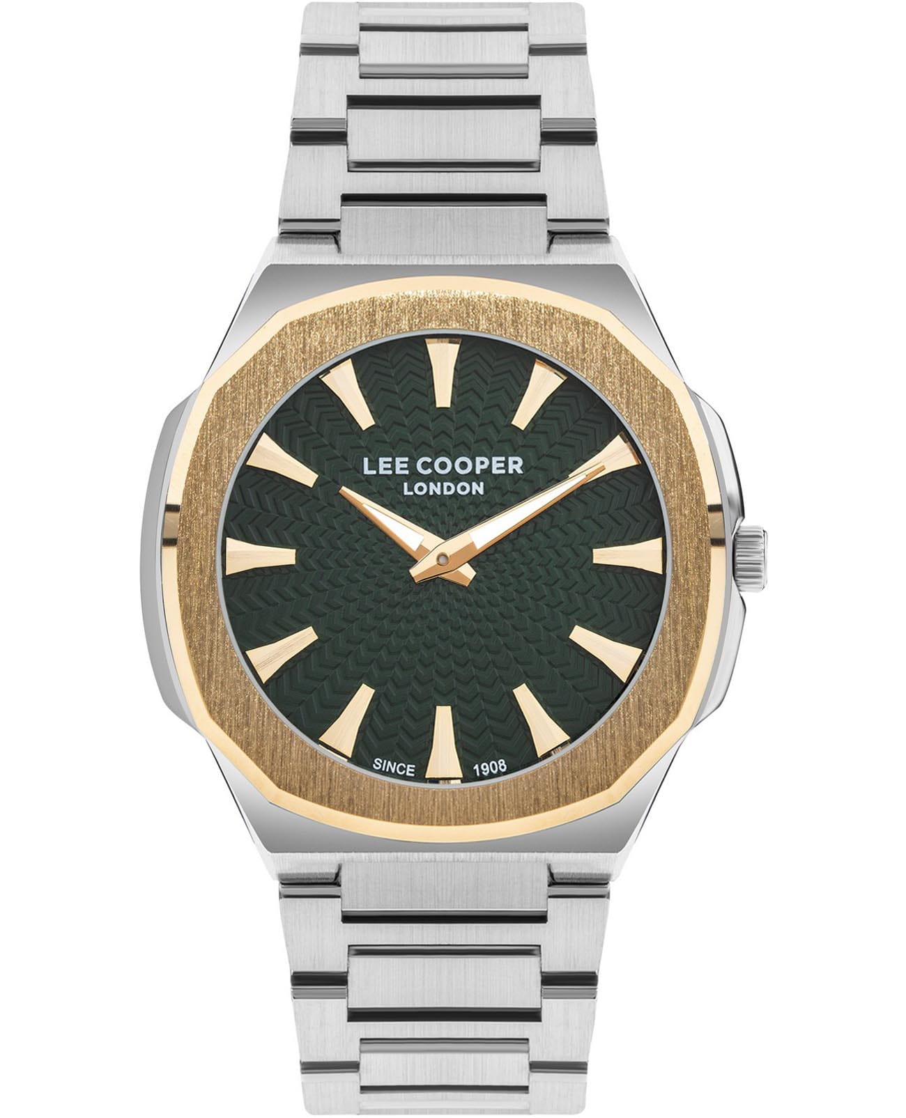 Мужские часы Lee Cooper LC07861.270 – это стильная модель, которая сочетает в себе современный дизайн и высокую функциональность. Часы идеально подходят для ежедневного ношения и могут стать отличным дополнением к любому наряду. Элегантный корпус часов диаметром 42 мм выполнен из суперметалла, а неподвижный безельБезельВнешний ободок, закрепляющий стекло. В спортивных часах так называется поворотное кольцо с делениями на циферблате, выполняет роль таймера – замеряет отрезки времени на шкале. Неподвижный безель – элемент декора. Однонаправленно вращающийся безель на дайверских часах позволяет фиксировать моменты погружения и выныривания на поверхность. с IP-покрытиемIP-покрытиеМетод ионного напыления. Демонстрирует повышенную устойчивость к истиранию, окислению и химическим веществам. Под воздействием высокого давления и температуры около 1500°C молекулы металла надёжно соединяются с частицами корпуса часов. придает модели особый блеск. Минеральное стеклоМинеральное стеклоМинеральное стекло представляет собой искусственно выращенный минерал кварца. Такое стекло отличается особой устойчивостью к повреждениям и царапинам. Уступает по некоторым качествам сапфировому стеклу. защищает изысканный циферблат от царапин, сохраняя его безупречный вид. Циферблат дополнен аккуратными стрелками с люминесцентным покрытиемЛюминесцентное покрытиеПозволяет считывать показания времени в темноте. Производители наносят на стрелки, часовые индексы, безель или поверхность циферблата светонакопительный состав, дающий холодное свечение., что гарантирует читаемость даже в условиях недостаточного освещения.  Механизм часов гарантирует точный ход и надежную работу, а надежный браслет из нержавеющей стали с раскладной застёжкойРаскладная застёжкаТакой тип застёжки используется только на браслетах из металла. Она никогда не раскрывается полностью, происходит разделение на 2 и более частей. Раскладывающая застёжка снизит вероятность потери часов к минимуму. обеспечивает комфортную фиксацию на запястье. Модель LC07861.270 станет прекрасным выбором для тех, кто ценит стиль и качество в аксессуарах.
