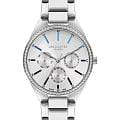 Женские часы Lee Cooper LC07863.390 — это стильное сочетание элегантности и современного дизайна. Круглый корпус диаметром 34 мм выполнен из суперметалла, а неподвижный безельБезельВнешний ободок, закрепляющий стекло. В спортивных часах так называется поворотное кольцо с делениями на циферблате, выполняет роль таймера – замеряет отрезки времени на шкале. Неподвижный безель – элемент декора. Однонаправленно вращающийся безель на дайверских часах позволяет фиксировать моменты погружения и выныривания на поверхность. украшен цирконами, придающими модели особый блеск. Серебристый циферблат защищен минеральным стекломМинеральное стеклоМинеральное стекло представляет собой искусственно выращенный минерал кварца. Такое стекло отличается особой устойчивостью к повреждениям и царапинам. Уступает по некоторым качествам сапфировому стеклу., обеспечивающим устойчивость к царапинам. Метки в виде штрихов. Часы оснащены надежным кварцевым механизмом, а металлический браслет на раскладной застёжкеРаскладная застёжкаТакой тип застёжки используется только на браслетах из металла. Она никогда не раскрывается полностью, происходит разделение на 2 и более частей. Раскладывающая застёжка снизит вероятность потери часов к минимуму. гарантирует комфортную посадку на запястье. Мультифункциональная модель с индикацией даты, дня недели, с дополнительным 24-х часовым индикатором. Водозащита 30 метров защищает модель от случайных брызг и дождя. Lee Cooper  — отличный выбор для тех, кто ценит утонченность и качество.