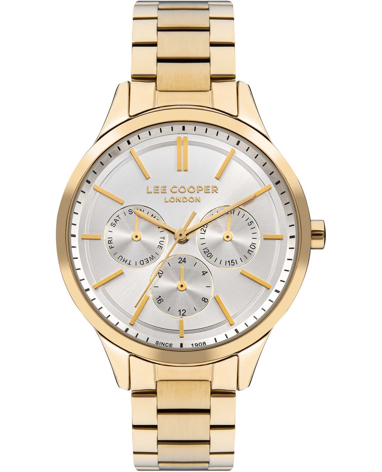 Женские часы Lee Cooper LC07865.130 — это стильное сочетание элегантности и современного дизайна. Круглый корпус диаметром 38 мм выполнен из суперметалла с IP-покрытиемIP-покрытиеМетод ионного напыления. Демонстрирует повышенную устойчивость к истиранию, окислению и химическим веществам. Под воздействием высокого давления и температуры около 1500°C молекулы металла надёжно соединяются с частицами корпуса часов. золотого цвета, придающий модели особый блеск. Серебристый циферблат защищен минеральным стекломМинеральное стеклоМинеральное стекло представляет собой искусственно выращенный минерал кварца. Такое стекло отличается особой устойчивостью к повреждениям и царапинам. Уступает по некоторым качествам сапфировому стеклу., обеспечивающим устойчивость к царапинам. Часы оснащены надежным кварцевым механизмом, а стальной браслет с IP-покрытиемIP-покрытиеМетод ионного напыления. Демонстрирует повышенную устойчивость к истиранию, окислению и химическим веществам. Под воздействием высокого давления и температуры около 1500°C молекулы металла надёжно соединяются с частицами корпуса часов. на раскладной застёжкеРаскладная застёжкаТакой тип застёжки используется только на браслетах из металла. Она никогда не раскрывается полностью, происходит разделение на 2 и более частей. Раскладывающая застёжка снизит вероятность потери часов к минимуму. гарантирует комфортную посадку на запястье. Мультифункциональная модель с индикацией даты, дня недели, с дополнительным 24-х часовым индикатором. Водозащита 30 метров защищает модель от случайных брызг и дождя. Lee Cooper — отличный выбор для тех, кто ценит утонченность и качество.