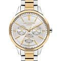 Женские часы Lee Cooper LC07865.230 — это стильное сочетание элегантности и современного дизайна. Круглый корпус диаметром 38 мм выполнен из суперметалла с безелемБезельВнешний ободок, закрепляющий стекло. В спортивных часах так называется поворотное кольцо с делениями на циферблате, выполняет роль таймера – замеряет отрезки времени на шкале. Неподвижный безель – элемент декора. Однонаправленно вращающийся безель на дайверских часах позволяет фиксировать моменты погружения и выныривания на поверхность. с IP-покрытиемIP-покрытиеМетод ионного напыления. Демонстрирует повышенную устойчивость к истиранию, окислению и химическим веществам. Под воздействием высокого давления и температуры около 1500°C молекулы металла надёжно соединяются с частицами корпуса часов. золотого цвета, придающий модели особый блеск. Серебристый циферблат защищен минеральным стекломМинеральное стеклоМинеральное стекло представляет собой искусственно выращенный минерал кварца. Такое стекло отличается особой устойчивостью к повреждениям и царапинам. Уступает по некоторым качествам сапфировому стеклу., обеспечивающим устойчивость к царапинам. Часы оснащены надежным кварцевым механизмом, а стальной браслет с частичным IP-покрытиемIP-покрытиеМетод ионного напыления. Демонстрирует повышенную устойчивость к истиранию, окислению и химическим веществам. Под воздействием высокого давления и температуры около 1500°C молекулы металла надёжно соединяются с частицами корпуса часов. на раскладной застёжкеРаскладная застёжкаТакой тип застёжки используется только на браслетах из металла. Она никогда не раскрывается полностью, происходит разделение на 2 и более частей. Раскладывающая застёжка снизит вероятность потери часов к минимуму. гарантирует комфортную посадку на запястье. Мультифункциональная модель с индикацией даты, дня недели, с дополнительным 24-х часовым индикатором. Водозащита 30 метров защищает модель от случайных брызг и дождя. Lee Cooper — отличный выбор для тех, кто ценит утонченность и качество.