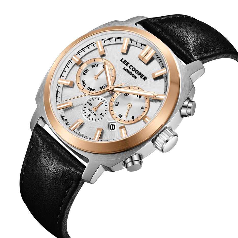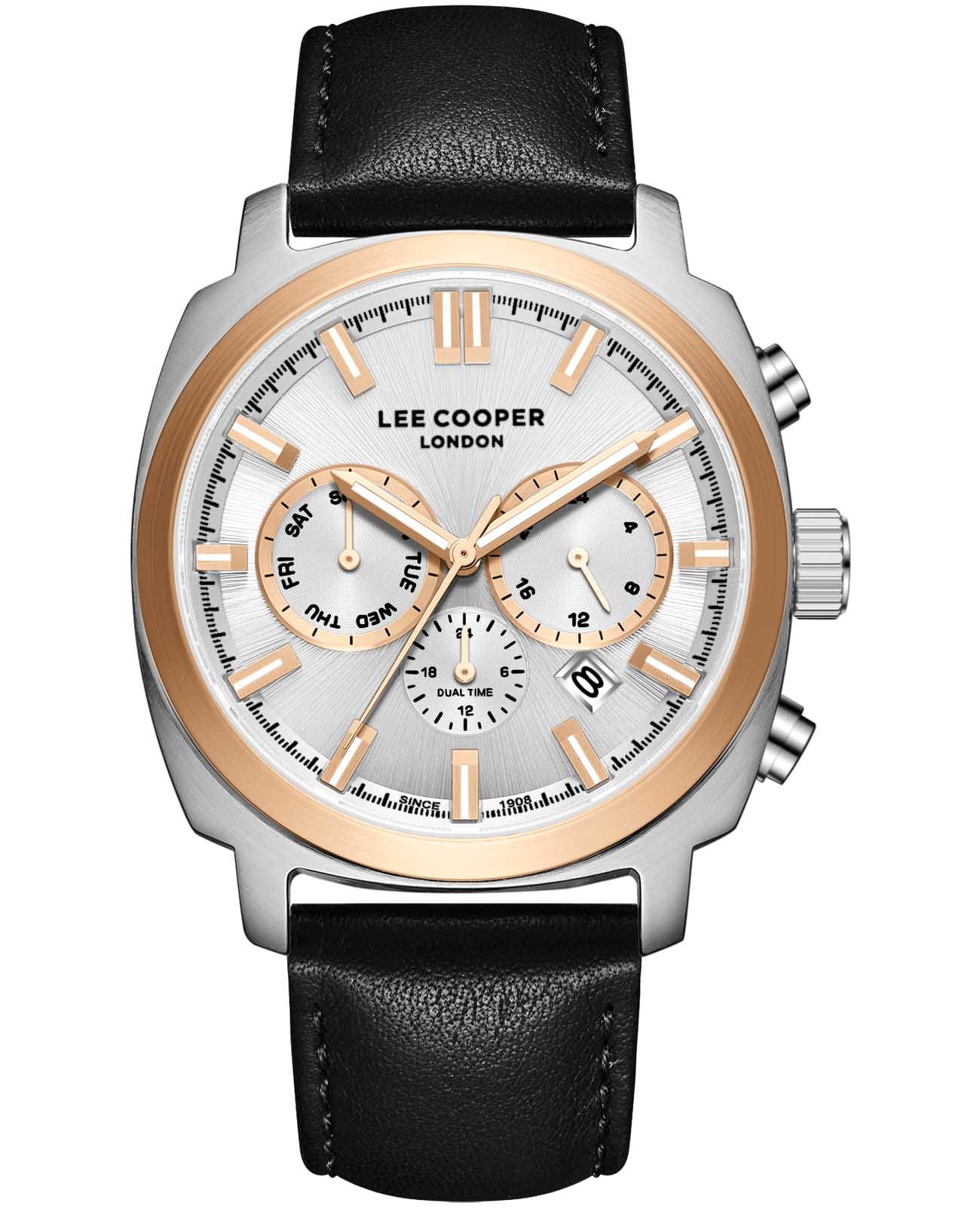 Мужские наручные часы Lee Cooper LC08172.531 оснащены кварцевым механизмом, обеспечивающий высокую точность хода и надежность. Элегантный корпус часов выполнен из суперметалла серебристого цвета, что делает их устойчивыми к внешним воздействиям и придает благородный вид. Циферблат украшен классическими стрелками и метками с люминесцентным покрытиемЛюминесцентное покрытиеПозволяет считывать показания времени в темноте. Производители наносят на стрелки, часовые индексы, безель или поверхность циферблата светонакопительный состав, дающий холодное свечение., гармонично дополняющим общий дизайн модели. Для защиты циферблата используется минеральное стеклоМинеральное стеклоМинеральное стекло представляет собой искусственно выращенный минерал кварца. Такое стекло отличается особой устойчивостью к повреждениям и царапинам. Уступает по некоторым качествам сапфировому стеклу., устойчивое к царапинам и механическим повреждениям. Неподвижный безельБезельВнешний ободок, закрепляющий стекло. В спортивных часах так называется поворотное кольцо с делениями на циферблате, выполняет роль таймера – замеряет отрезки времени на шкале. Неподвижный безель – элемент декора. Однонаправленно вращающийся безель на дайверских часах позволяет фиксировать моменты погружения и выныривания на поверхность. с IP-покрытиемIP-покрытиеМетод ионного напыления. Демонстрирует повышенную устойчивость к истиранию, окислению и химическим веществам. Под воздействием высокого давления и температуры около 1500°C молекулы металла надёжно соединяются с частицами корпуса часов. цвета розового золота. Корпус имеет круглую форму диаметром 42 мм, что делает часы заметными и подходящими. Кожаный ремешок на стандартной застёжке обеспечиваюет комфортное и безопасное ношение. Вынесенный циферблат с 24-х часовым указателем времени, индикацией даты и дня недели. Окошко даты находится в положении между 4 и 5 часов. Часы обладают водонепроницаемостью до 50 метров (5 АТМ), что позволяет использовать их в повседневной жизни, включая контакт с водой при мытье рук или дожде. Эти часы станут идеальным выбором для мужчин, ценящих стиль, качество и функциональность.