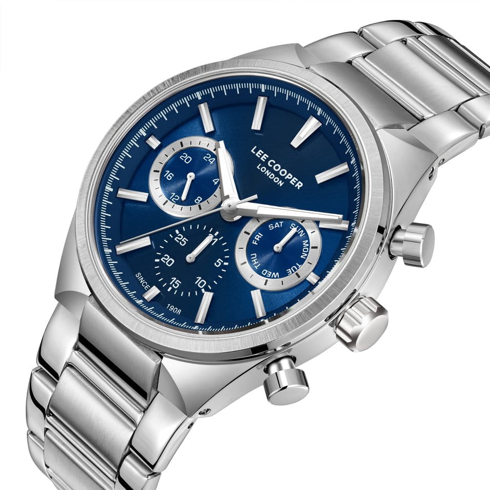 Мужские наручные часы Lee Cooper LC08174.390 оснащены кварцевым механизмом, обеспечивающий высокую точность хода и надежность. Элегантный корпус часов выполнен из суперметалла серебристого цвета, что делает их устойчивыми к внешним воздействиям и придает благородный вид. Циферблат украшен классическими стрелками и метками с люминесцентным покрытиемЛюминесцентное покрытиеПозволяет считывать показания времени в темноте. Производители наносят на стрелки, часовые индексы, безель или поверхность циферблата светонакопительный состав, дающий холодное свечение., гармонично дополняющим общий дизайн модели. Для защиты циферблата используется минеральное стеклоМинеральное стеклоМинеральное стекло представляет собой искусственно выращенный минерал кварца. Такое стекло отличается особой устойчивостью к повреждениям и царапинам. Уступает по некоторым качествам сапфировому стеклу., устойчивое к царапинам и механическим повреждениям. Корпус имеет круглую форму диаметром 42 мм, что делает часы заметными и подходящими. Браслет из стали оснащен раскладной застёжкойРаскладная застёжкаТакой тип застёжки используется только на браслетах из металла. Она никогда не раскрывается полностью, происходит разделение на 2 и более частей. Раскладывающая застёжка снизит вероятность потери часов к минимуму., обеспечивающим комфортное и безопасное ношение. Вынесенный циферблат с 24-х часовым указателем времени, индикацией даты и дня недели. Часы обладают водонепроницаемостью до 50 метров (5 АТМ), что позволяет использовать их в повседневной жизни, включая контакт с водой при мытье рук или дожде. Эти часы станут идеальным выбором для мужчин, ценящих стиль, качество и функциональность.
