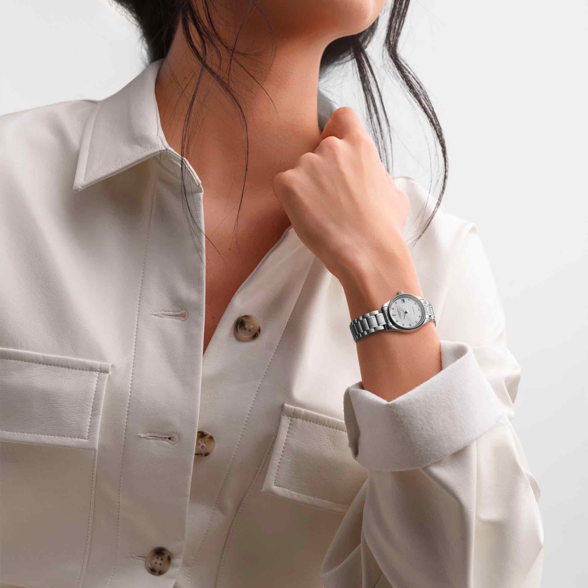 Женские швейцарские механические часы с Longines Master Collection L2.128.4.77.6. Сапфировое стеклоСапфировое стеклоПрочный и надёжный материал из кристалла сапфира синтетического происхождения, характеризующийся особой твёрдостью и устойчивостью к царапинам и повреждениям. устойчивое к появлению царапин, обладающее высокой прозрачностью. Корпус часов изготовлен из нержавеющей стали. Изысканная чистота циферблата подчеркивает ее мягкий силуэт, обрамленный сиянием бриллиантов. Циферблат с 12 бриллиантами группы Top Wesselton VS-SI общим весом 0.034 карата. Окошко даты в положении 3 часа. Класс водозащиты: 30 метров, позволит защитить корпус от случайных брызг или капель дождя. Браслет из стали на застёжке «бабочка» с кнопкамиЗастёжка "бабочка"Такой вид застёжки дополняется предохранителями, помогающими избежать случайного раскрытия браслета. Обладают изящным исполнением. .