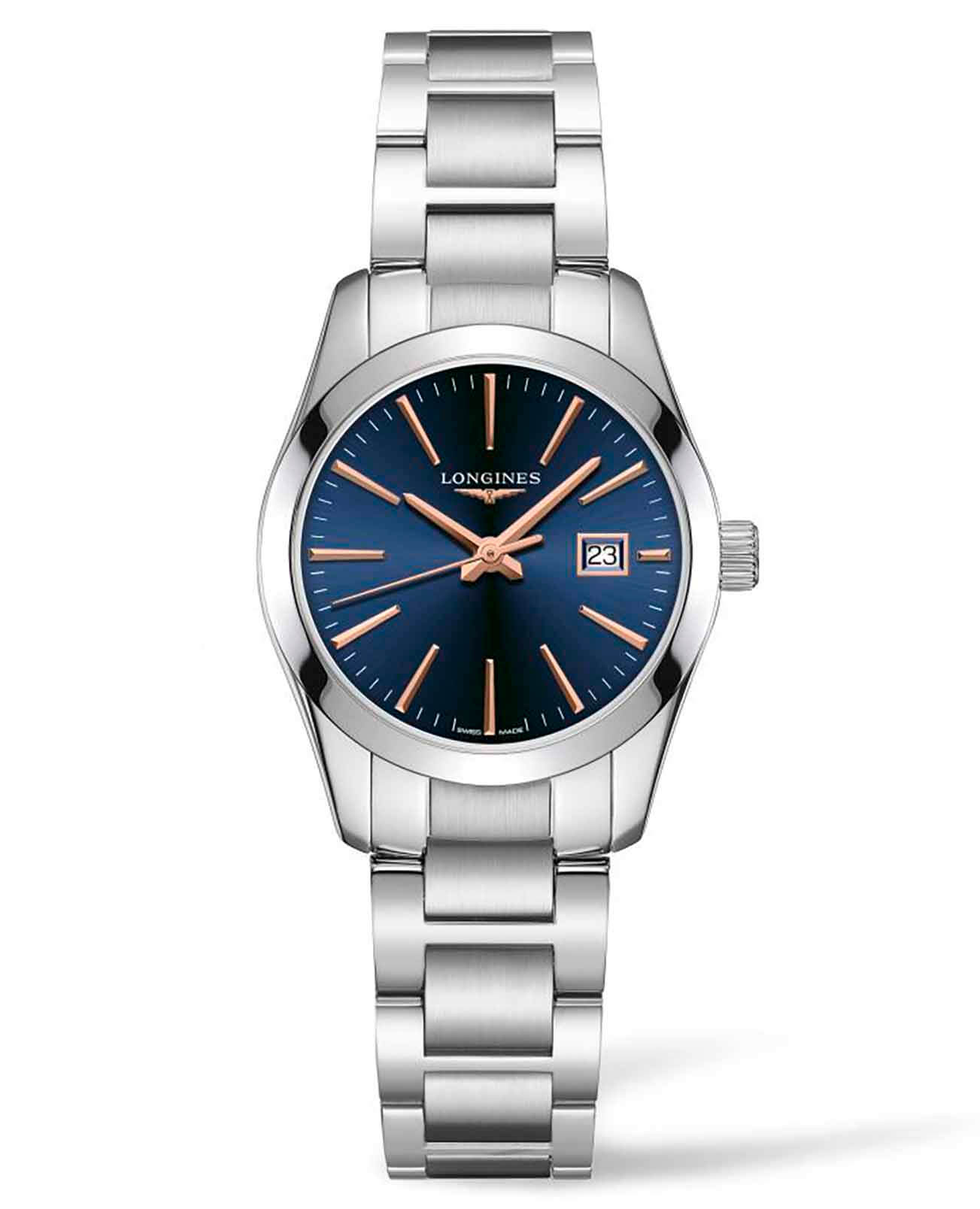 Завершает образ стальной браслет на застёжке-бабочке с кнопкамиЗастёжка "бабочка"Такой вид застёжки дополняется предохранителями, помогающими избежать случайного раскрытия браслета. Обладают изящным исполнением. , которая не только надежно фиксирует часы на запястье, но и добавляет им изысканности и элегантности. Longines Conquest Classic L2.286.4.92.6 — это идеальный выбор для тех, кто ценит качество, стиль и надежность в каждом своем движении.