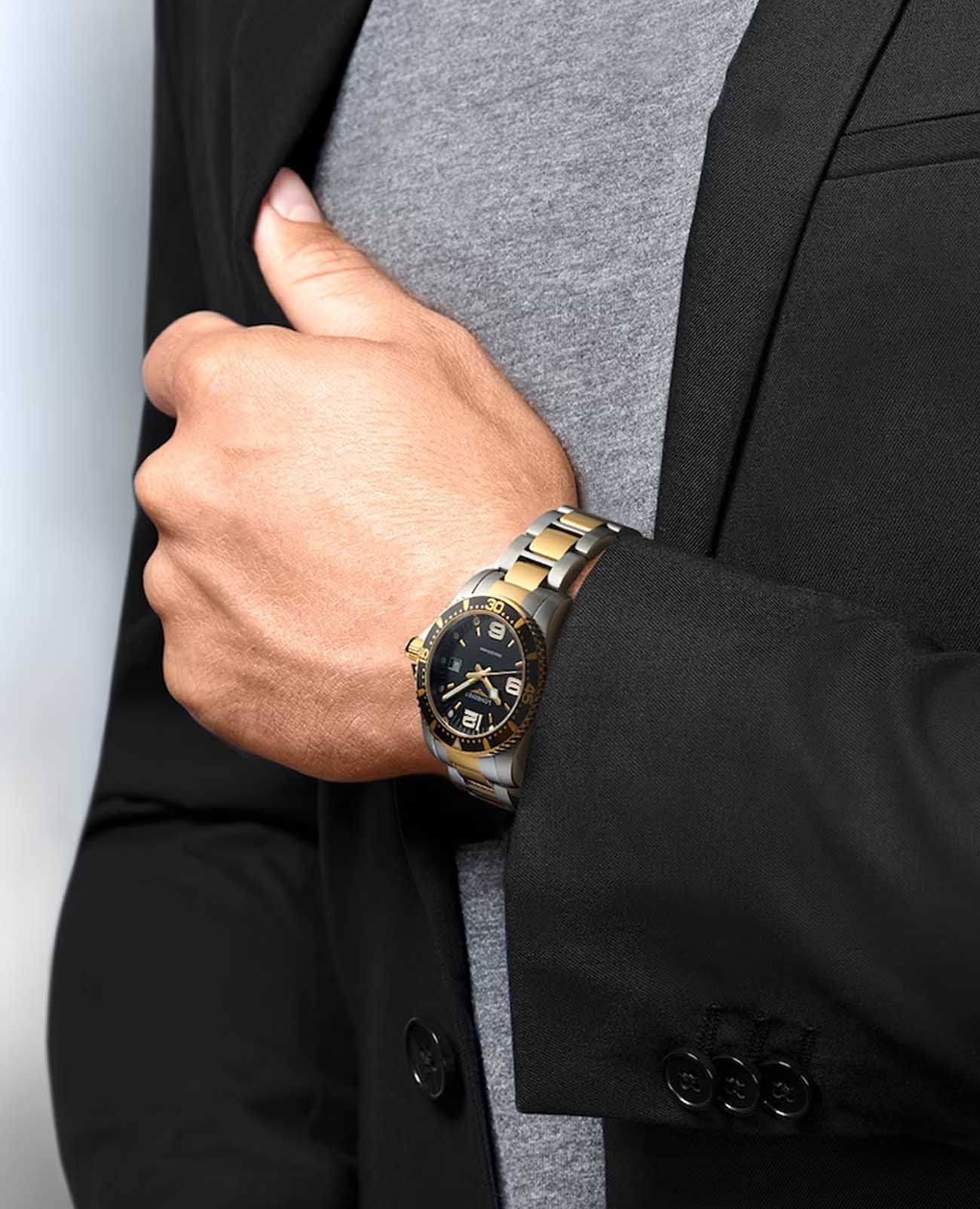 Мужсике швейцарские часы Longines Hydroconquest L3.740.3.56.7, кварцевый механизм с высокой точностью. Сапфировое стеклоСапфировое стеклоПрочный и надёжный материал из кристалла сапфира синтетического происхождения, характеризующийся особой твёрдостью и устойчивостью к царапинам и повреждениям. устойчивое к появлению царапин, обладающее высокой прозрачностью. Корпус часов изготовлен из нержавеющей стали. Вращающийся безельБезельВнешний ободок, закрепляющий стекло. В спортивных часах так называется поворотное кольцо с делениями на циферблате, выполняет роль таймера – замеряет отрезки времени на шкале. Неподвижный безель – элемент декора. Однонаправленно вращающийся безель на дайверских часах позволяет фиксировать моменты погружения и выныривания на поверхность. с PVD-покрытиемPVDУльтратонкое покрытие наносится в технике вакуумного напыления, сочетает в себе нитрид титана особой прочности со слоем золота или оксида хрома. Несёт в себе декоративную или защитную функцию.. Окошко даты в положении 3 часа. Стрелки и метки с люминесцентным покрытиемЛюминесцентное покрытиеПозволяет считывать показания времени в темноте. Производители наносят на стрелки, часовые индексы, безель или поверхность циферблата светонакопительный состав, дающий холодное свечение.. Класс водозащиты: 300 метров, позволит плавать, нырять и заниматься другими водными видами спорта. Стальной браслет с частичным PVD-покрытиемPVDУльтратонкое покрытие наносится в технике вакуумного напыления, сочетает в себе нитрид титана особой прочности со слоем золота или оксида хрома. Несёт в себе декоративную или защитную функцию. на раскладной застёжкеРаскладная застёжкаТакой тип застёжки используется только на браслетах из металла. Она никогда не раскрывается полностью, происходит разделение на 2 и более частей. Раскладывающая застёжка снизит вероятность потери часов к минимуму..