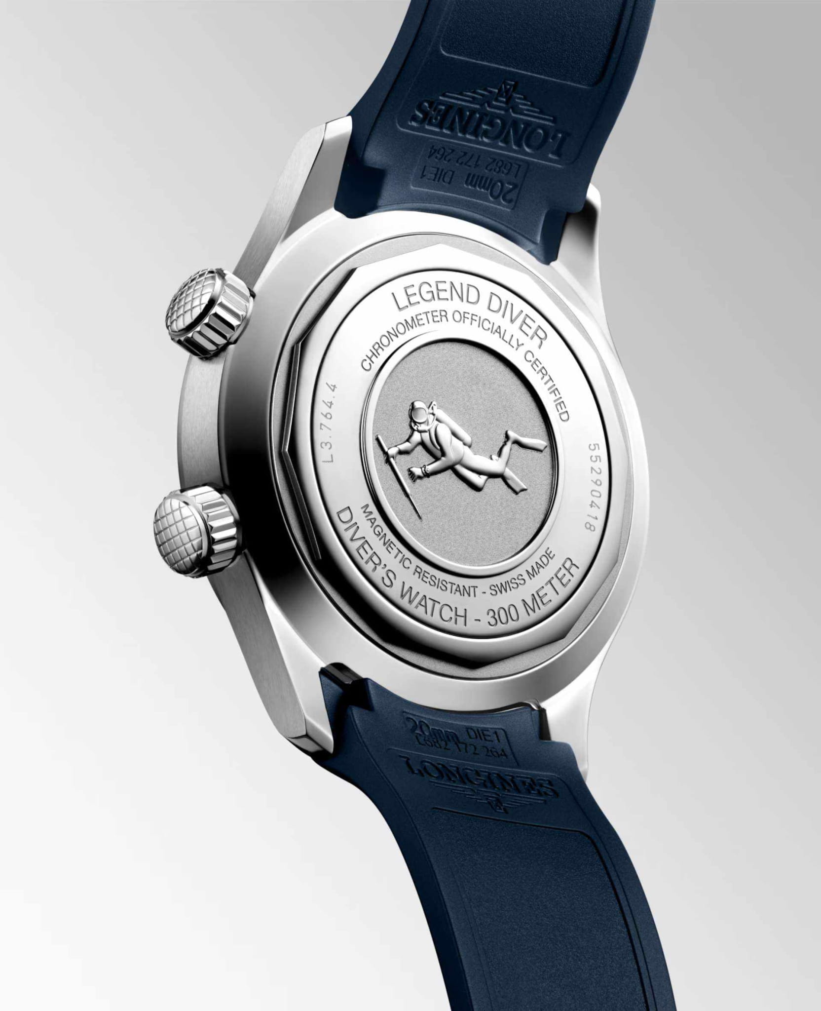 Швейцарские мужские механические часы Longines Legend Diver L3.764.4.90.9 – спортивный аксессуар в дайверском стиле. Циферблат отличается улучшенной читабельностью показателей благодаря крупной индикации времени, стрелками и метками с люминесцентной подсветкойЛюминесцентное покрытиеПозволяет считывать показания времени в темноте. Производители наносят на стрелки, часовые индексы, безель или поверхность циферблата светонакопительный состав, дающий холодное свечение. Super-LumiNova, антибликовому покрытиюАнтибликовое покрытиеСлой оксида металла в 0,13-0,3 микрон, благодаря которому стекло часов не бликует и не отражает свет. Антибликовое покрытие уменьшает отражение света в 10 раз, обеспечивая отличную читаемость показателей циферблата. сапфирового стеклаСапфировое стеклоПрочный и надёжный материал из кристалла сапфира синтетического происхождения, характеризующийся особой твёрдостью и устойчивостью к царапинам и повреждениям., устойчивого к мелким механическим повреждениям. Швейцарский автоматический механизм L888 имеет запас хода на 72 часа. Часы укомплектованы каучуковым ремнем со стандартной застежкой, превосходно дополняющим эксклюзивный образ модели. Водозащита 300 метров позволит плавать, нырять и заниматься другими водными видами спорта. Эта модель идеально подходит для мужчин, ценящих стиль, функциональность и надёжность в одном аксессуаре.
