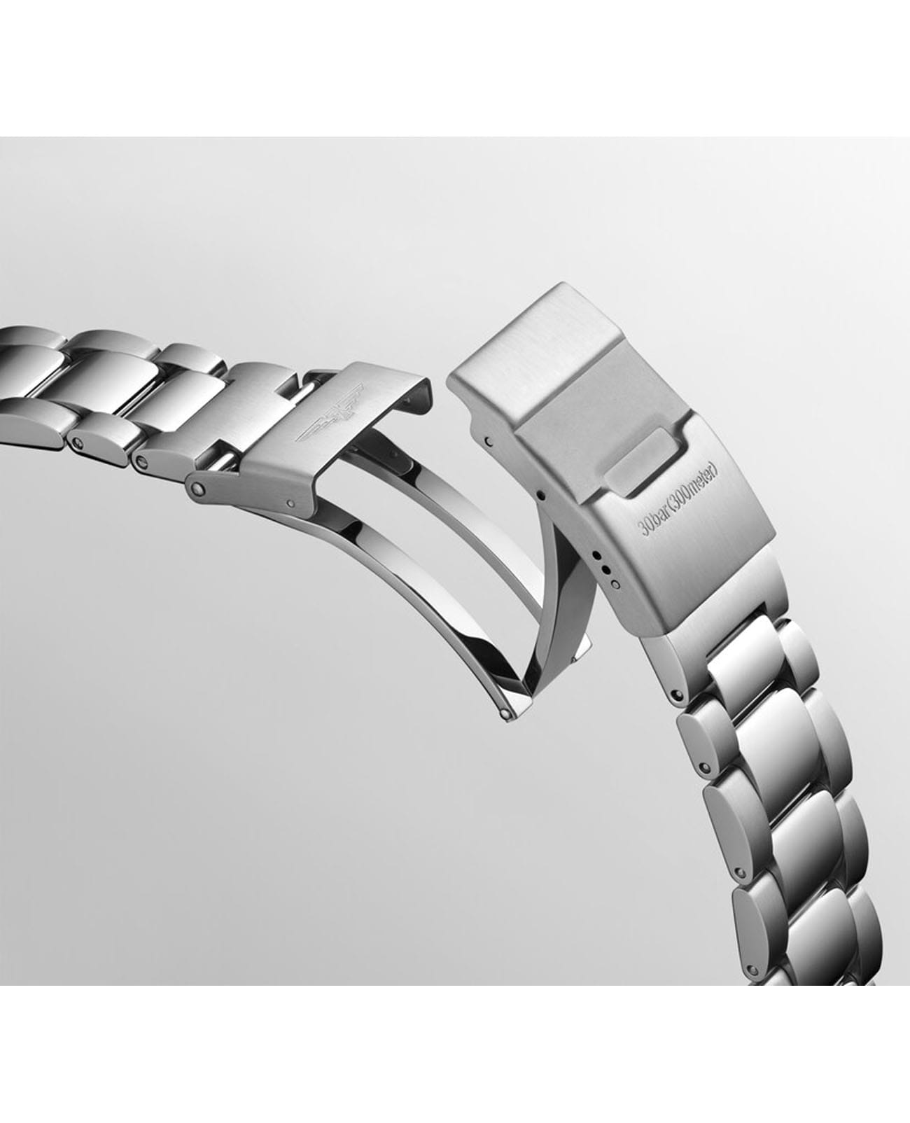 Браслет из нержавеющей стали с раскладывающейся застёжкойРаскладная застёжкаТакой тип застёжки используется только на браслетах из металла. Она никогда не раскрывается полностью, происходит разделение на 2 и более частей. Раскладывающая застёжка снизит вероятность потери часов к минимуму. и интегрированным удлинением для дайвингаУдлинение для дайверовЗастёжка с удлинением для дайверов представляет собой безопасное крепление, которое позволяет надевать часы поверх гидрокостюма. Гибкая застёжка удлиняется на 1-2 миллиметра. обеспечивает комфортное и надёжное ношение.