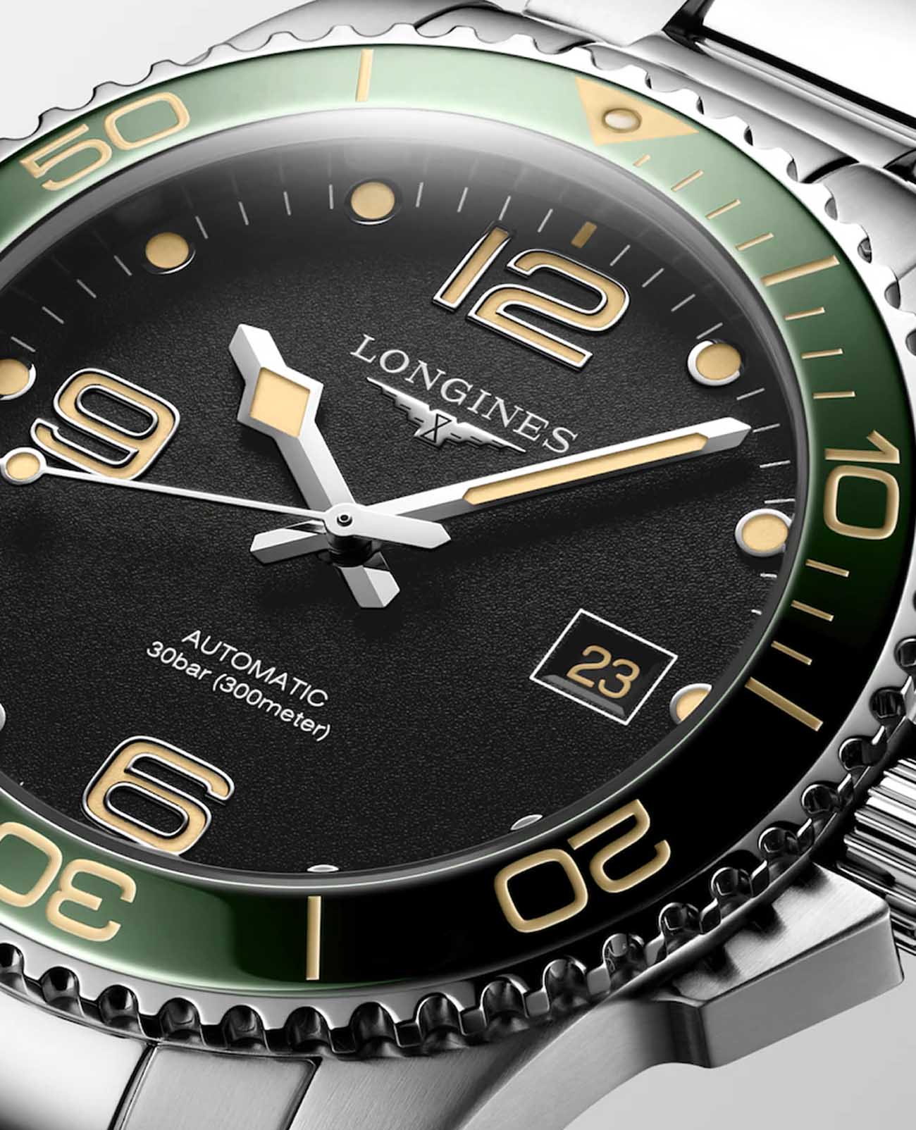 Часы Longines HydroConquest (артикул L37814056) сочетают элегантность с высокими техническими характеристиками, характерными для дайверских моделей. Корпус диаметром 41 мм выполнен из нержавеющей стали с водозащитой до 30 бар (300 метров). Однонаправленный вращающийся безель из , завинчивающиеся заводная головка и задняя крышка подчёркивают надёжность. Чёрный циферблат с солнечным узором оснащён накладными арабскими цифрами и индексами с люминесцентным покрытием Swiss Super-LumiNova®Люминесцентное покрытиеПозволяет считывать показания времени в темноте. Производители наносят на стрелки, часовые индексы, безель или поверхность циферблата светонакопительный состав, дающий холодное свечение., стрелками с люминесцентным покрытиемЛюминесцентное покрытиеПозволяет считывать показания времени в темноте. Производители наносят на стрелки, часовые индексы, безель или поверхность циферблата светонакопительный состав, дающий холодное свечение., а также окошком даты в положении «3 часа». Циферблат защищён сапфировым стекломСапфировое стеклоПрочный и надёжный материал из кристалла сапфира синтетического происхождения, характеризующийся особой твёрдостью и устойчивостью к царапинам и повреждениям. с антибликовым покрытием.
