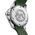 Циферблат с крупной индикаций времени дополнен контрастными стрелками и метками с люминесцентной подсветкойЛюминесцентное покрытиеПозволяет считывать показания времени в темноте. Производители наносят на стрелки, часовые индексы, безель или поверхность циферблата светонакопительный состав, дающий холодное свечение.. Керамический безельБезельВнешний ободок, закрепляющий стекло. В спортивных часах так называется поворотное кольцо с делениями на циферблате, выполняет роль таймера – замеряет отрезки времени на шкале. Неподвижный безель – элемент декора. Однонаправленно вращающийся безель на дайверских часах позволяет фиксировать моменты погружения и выныривания на поверхность. вращается в одном направлении, завинчивающаяся заводная головка и задняя крышка усиливают водостойкость до 30 бар. Швейцарский автоматический механизм L888 имеет резерв хода на 64 часа.