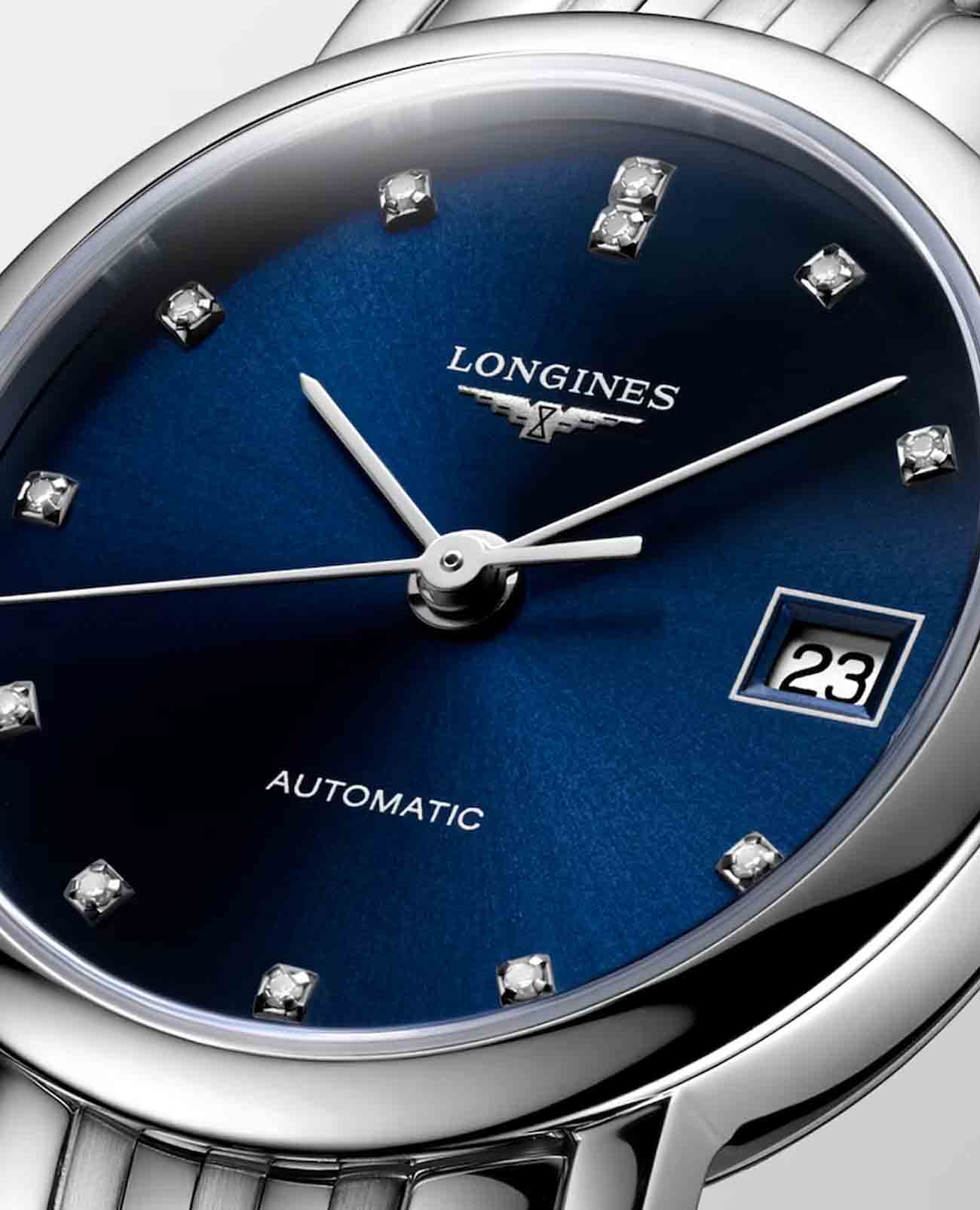 Швейцарские механические часы с автоподзаводом Longines Elegant L4.309.4.97.6. Сапфировое стеклоСапфировое стеклоПрочный и надёжный материал из кристалла сапфира синтетического происхождения, характеризующийся особой твёрдостью и устойчивостью к царапинам и повреждениям. с многослойным антибликовым покрытием с обеих сторон, устойчивое к появлению царапин, обладающее высокой прозрачностью. Корпус часов изготовлен из стали. Циферблат с 12 бриллиантами группы Top Wesselton VS-SI общим весом 0.026 карата. Окошко даты находится в положении 3 часа. Класс водозащиты: 30 метров, позволит защитить корпус от случайных брызг или капель дождя. Стальной браслет на застёжке «бабочка» с кнопкамиЗастёжка "бабочка"Такой вид застёжки дополняется предохранителями, помогающими избежать случайного раскрытия браслета. Обладают изящным исполнением. .