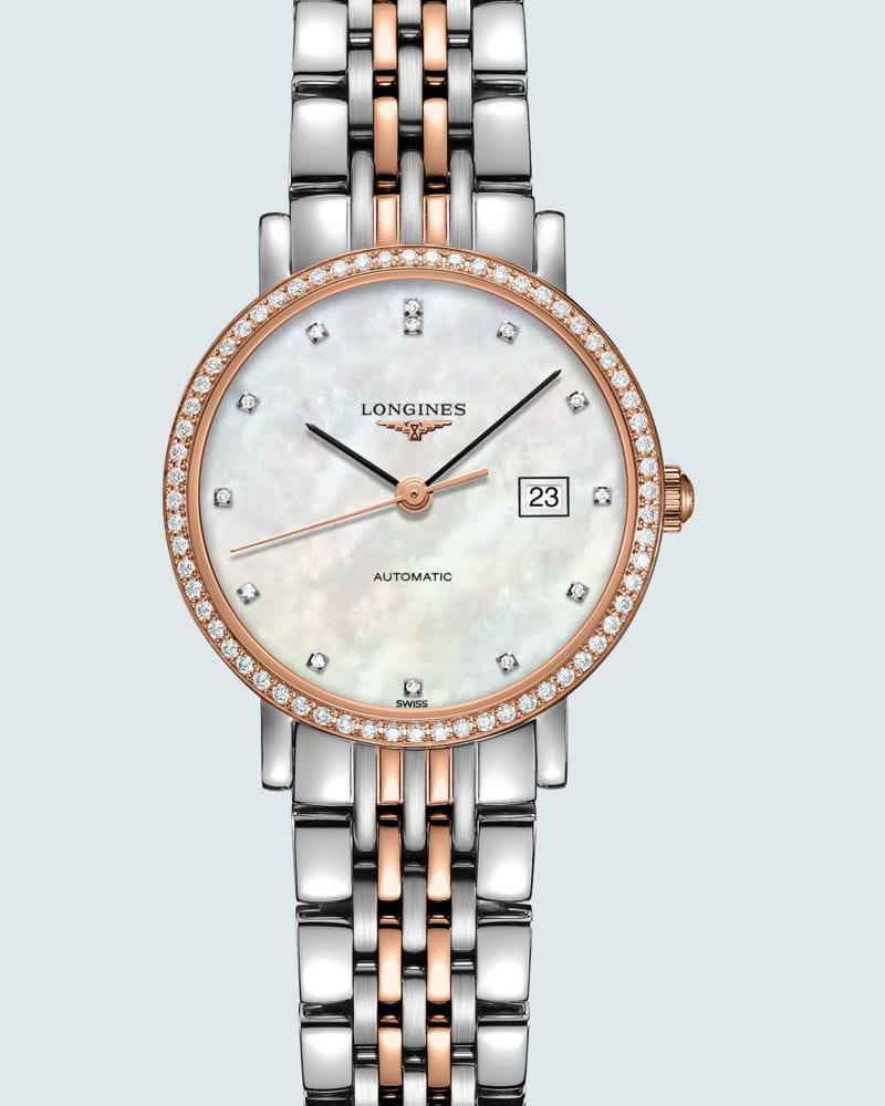 Швейцарские механические часы Longines Elegant Collection L4.310.5.88.7. Сапфировое стеклоСапфировое стеклоПрочный и надёжный материал из кристалла сапфира синтетического происхождения, характеризующийся особой твёрдостью и устойчивостью к царапинам и повреждениям. устойчивое к появлению царапин, обладающее высокой прозрачностью. Корпус часов изготовлен из нержавеющей стали и 18-каратного золота18-каратное золотоОбозначение по каратной системе пробирования, оно показывает, сколько драгоценного металла содержится в изделии. 18 карат - в составе 75% чистого золота, соответствует 750 пробе.